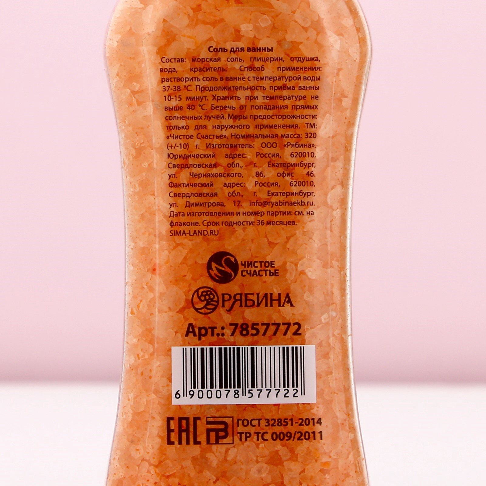 Соль для ванны "Счастья!", 320 г, аромат апельсинового фреша, 320 мл., Чистое счастье, Россия