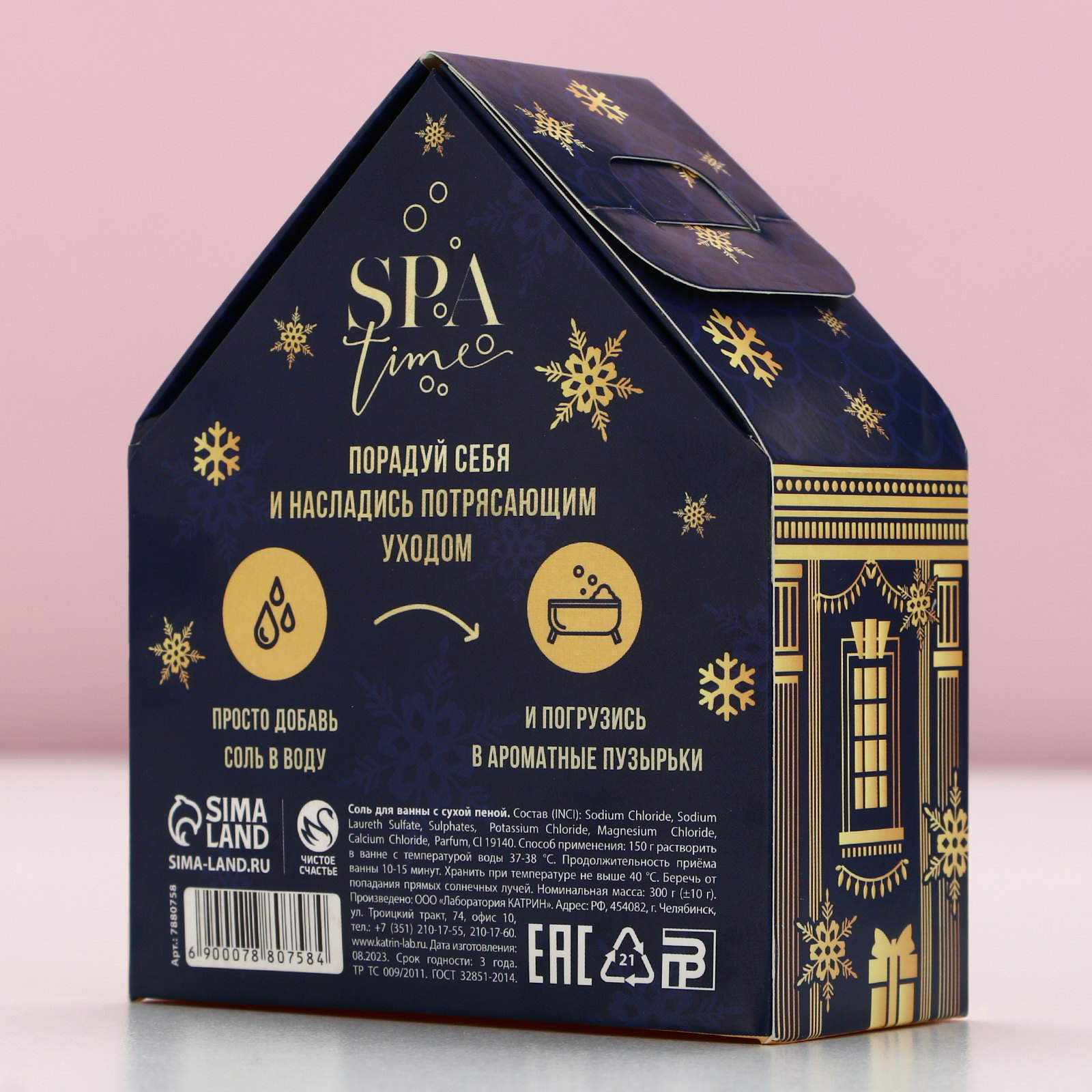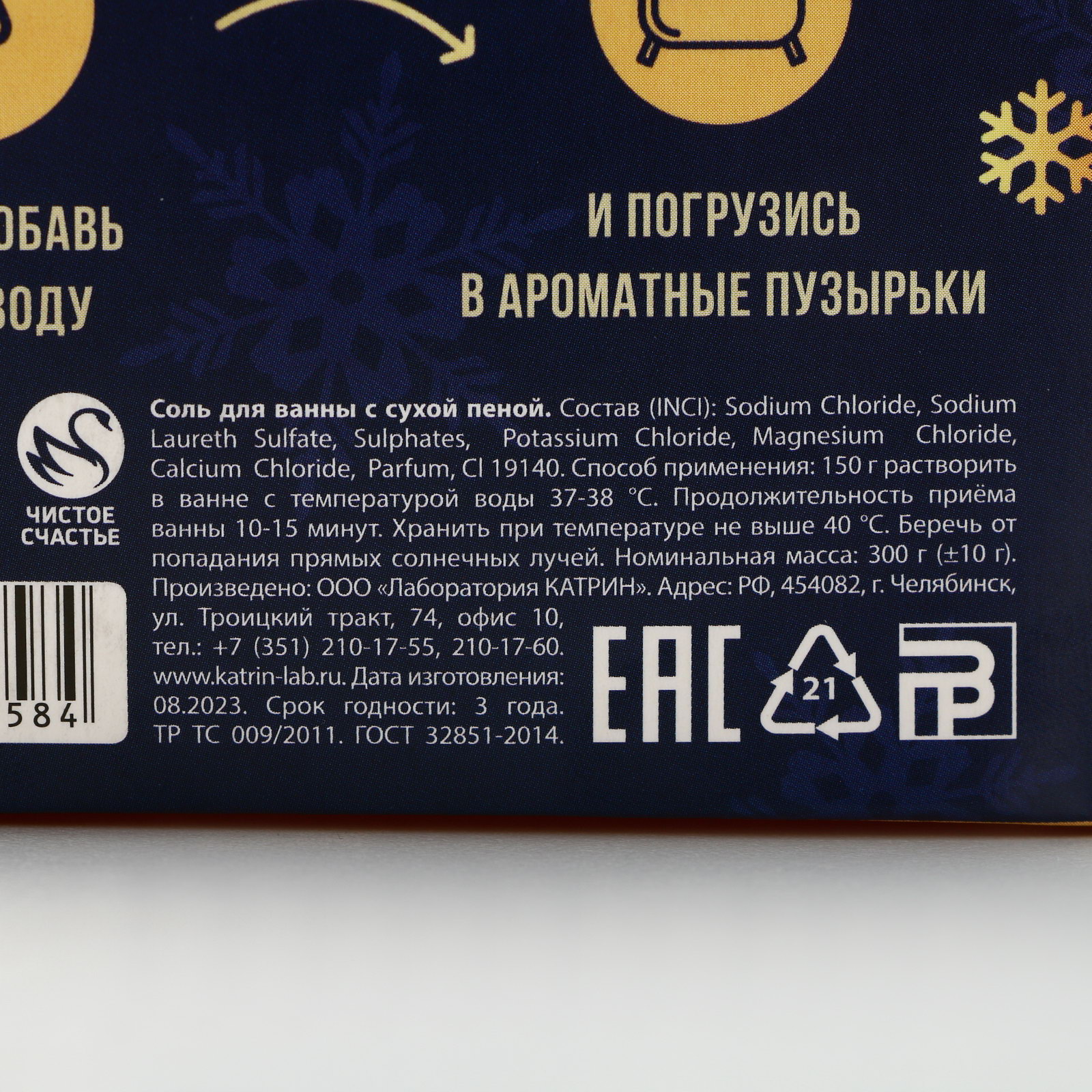 Соль для ванны с сухой пеной "С Новым Годом!", 300 г, аромат нежной ванили, Чистое счастье, Россия