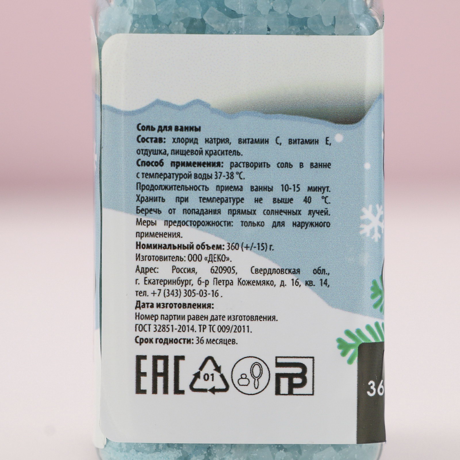 Соль для ванны "Время чудес", 360 г, аромат жасмина, Чистое счастье, Россия
