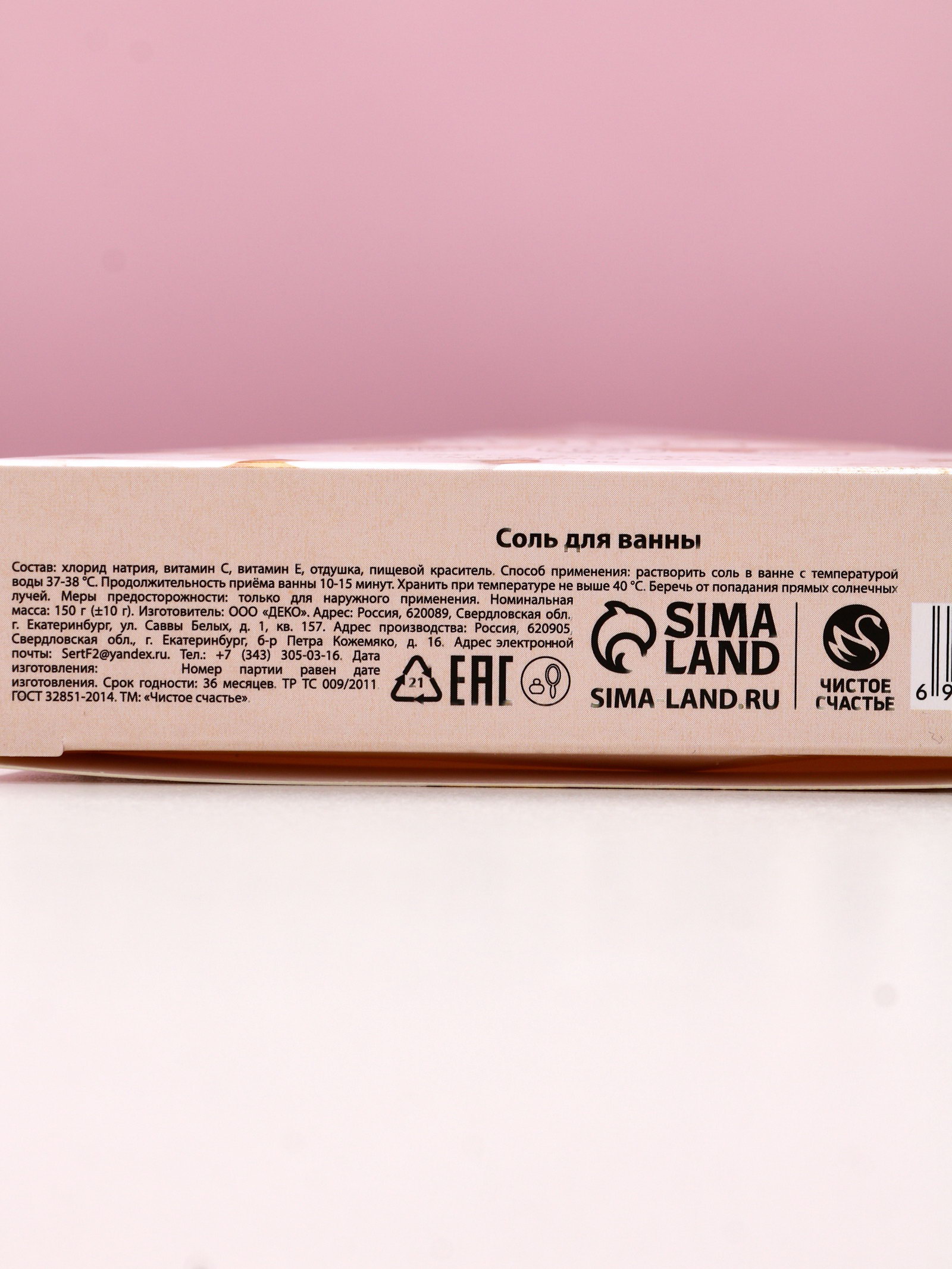 Соль для ванны "С 8 Марта!", 150 г, аромат миндаля в молоке, Чистое счастье, Россия