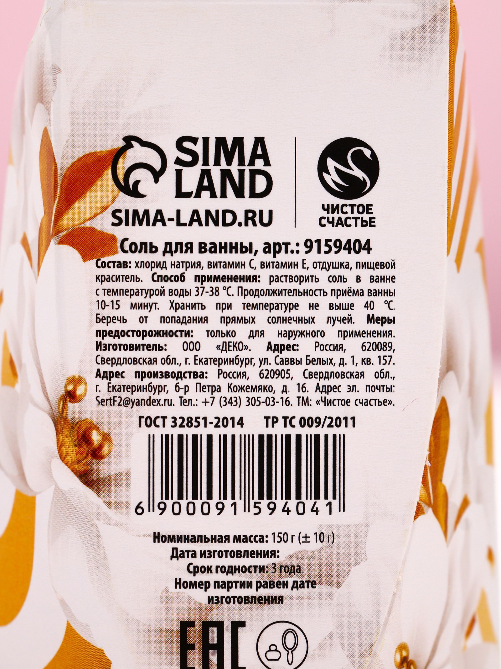 Соль для ванны "Вдохновляй красотой!", 150 г, аромат ванильного молока, Чистое счастье, Россия