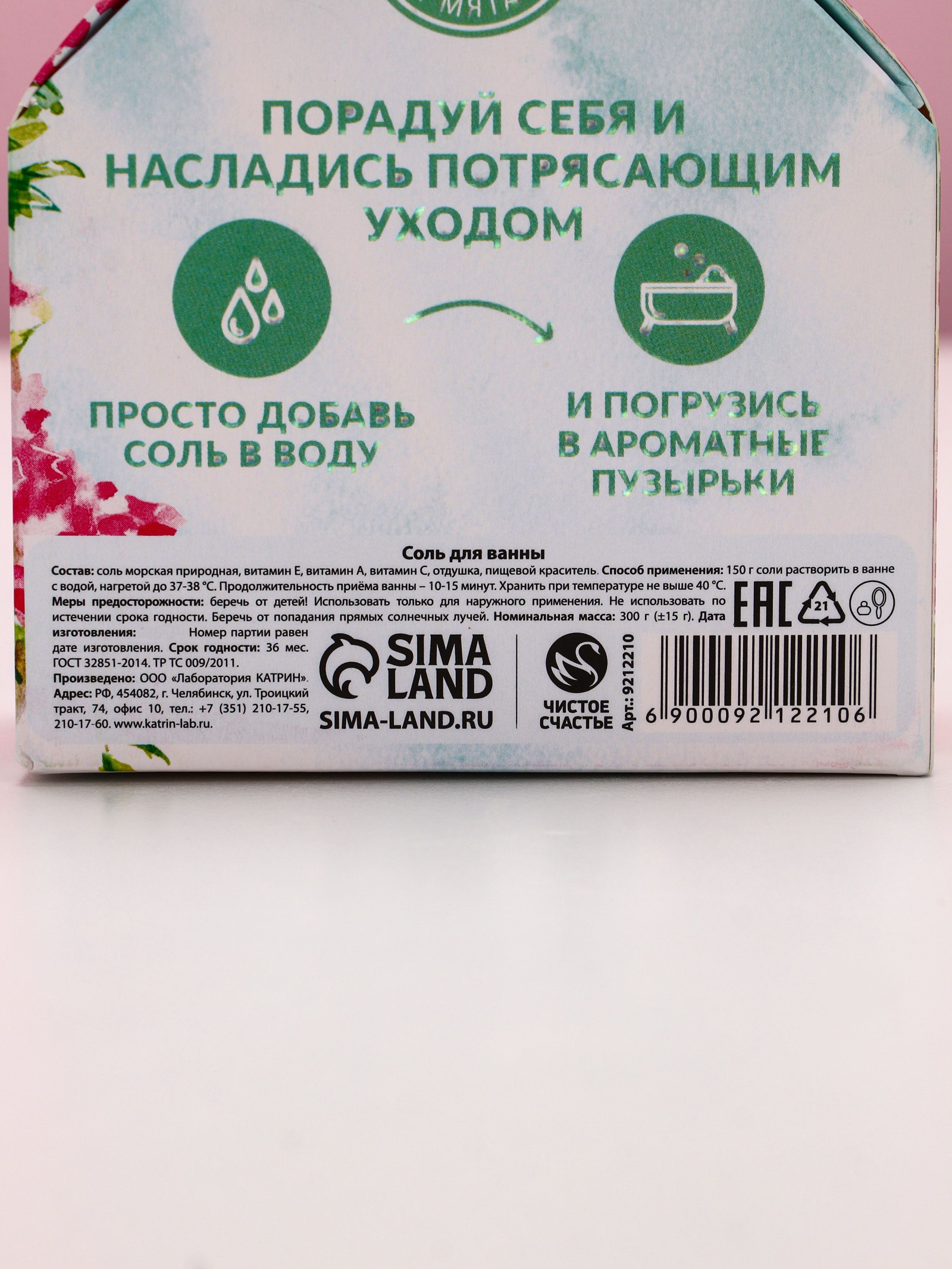 Соль для ванны с сухой пеной "Самой лучшей!", 300 г, аромат шоколада и мяты, Чистое счастье, Россия