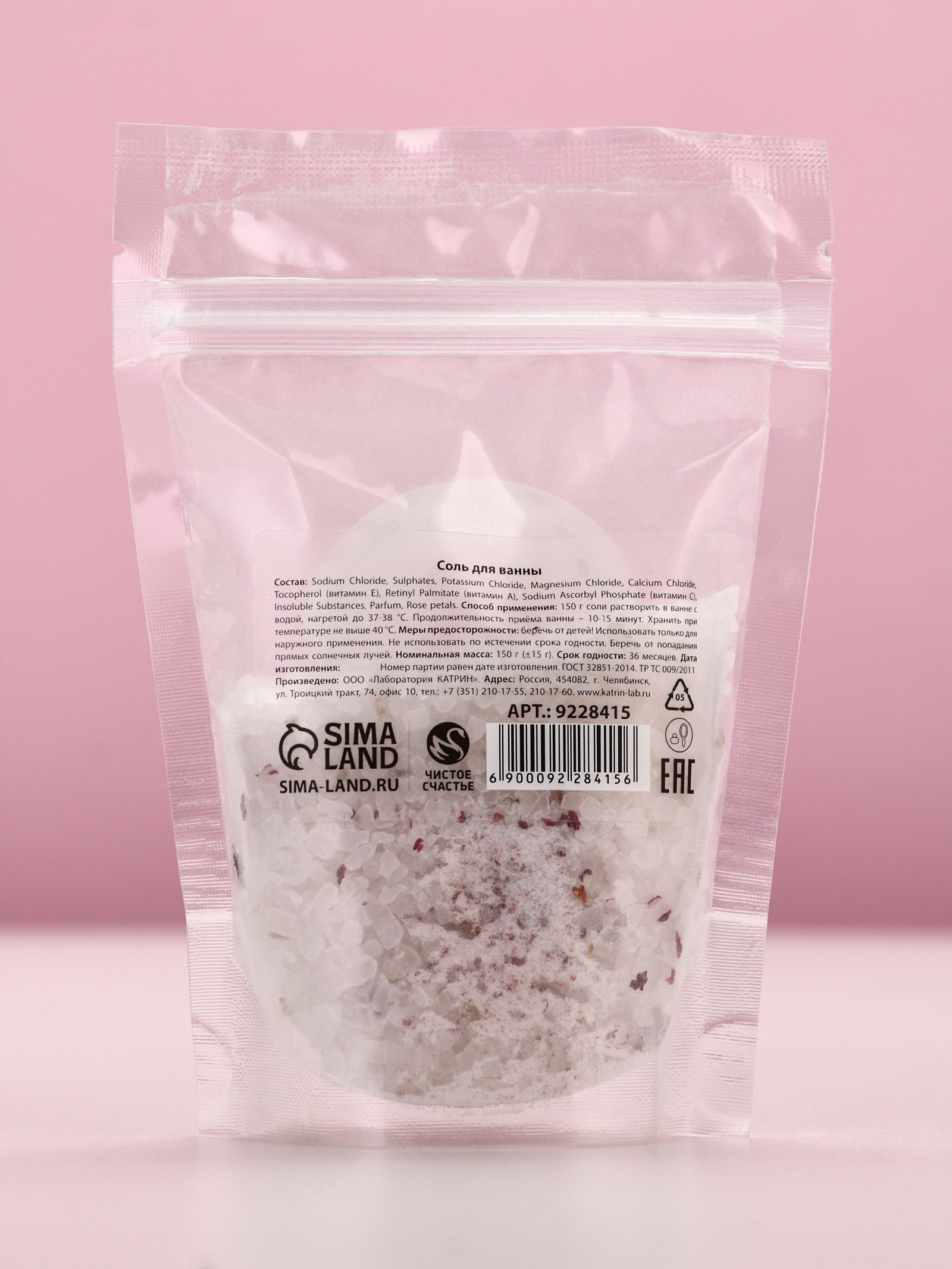 Соль для ванны "8 марта", с лепестками розы, 150 г, Чистое счастье, Россия