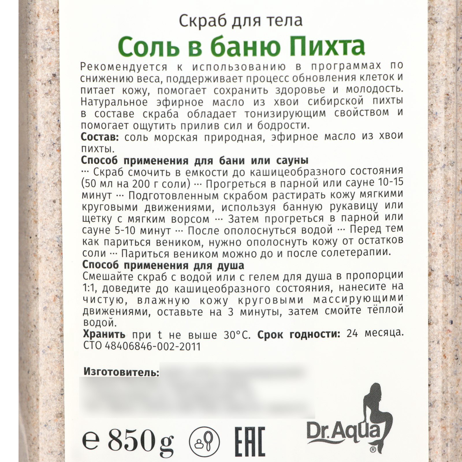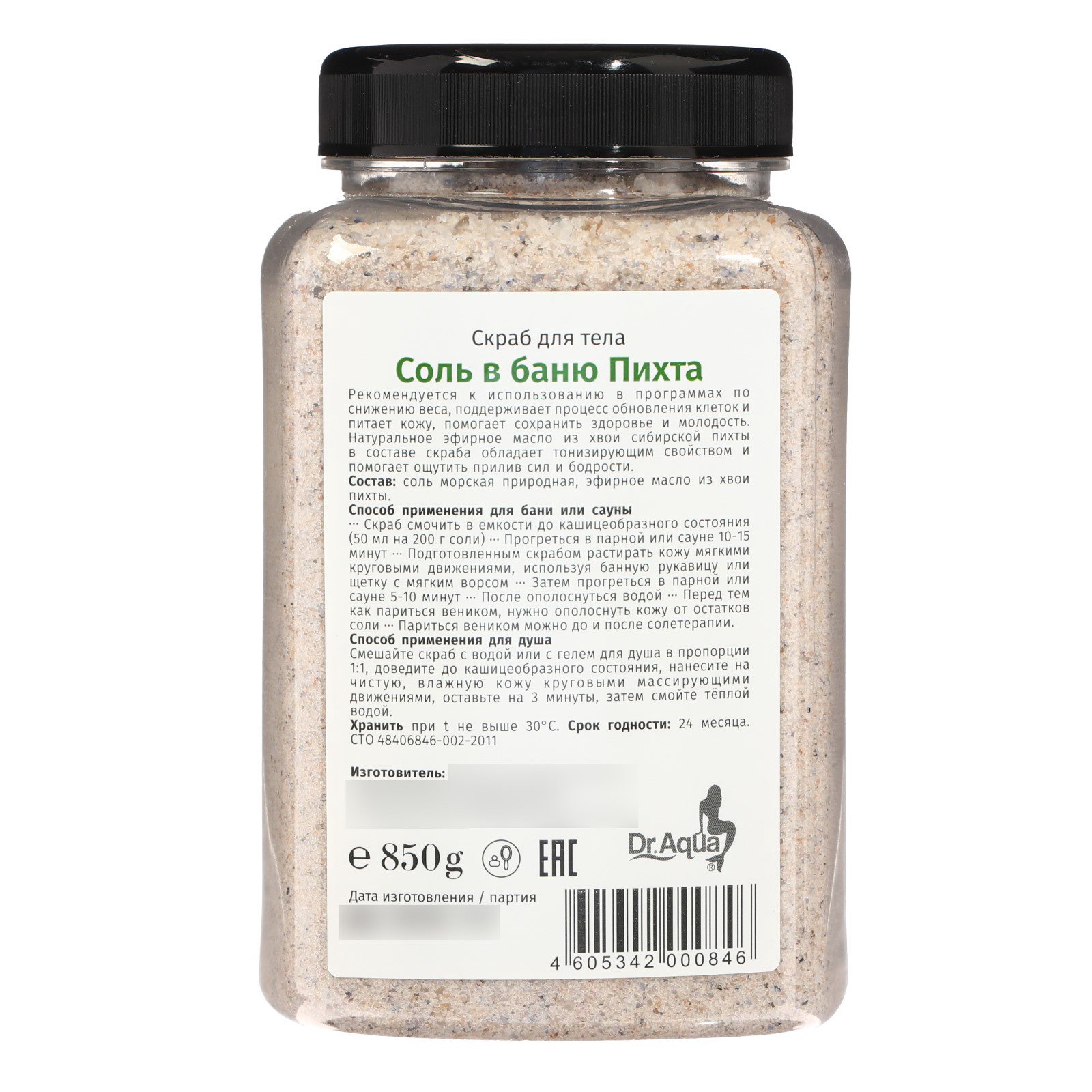 Соль-скраб для бани, с пихтой, 850 г, Dr. Aqua, Россия