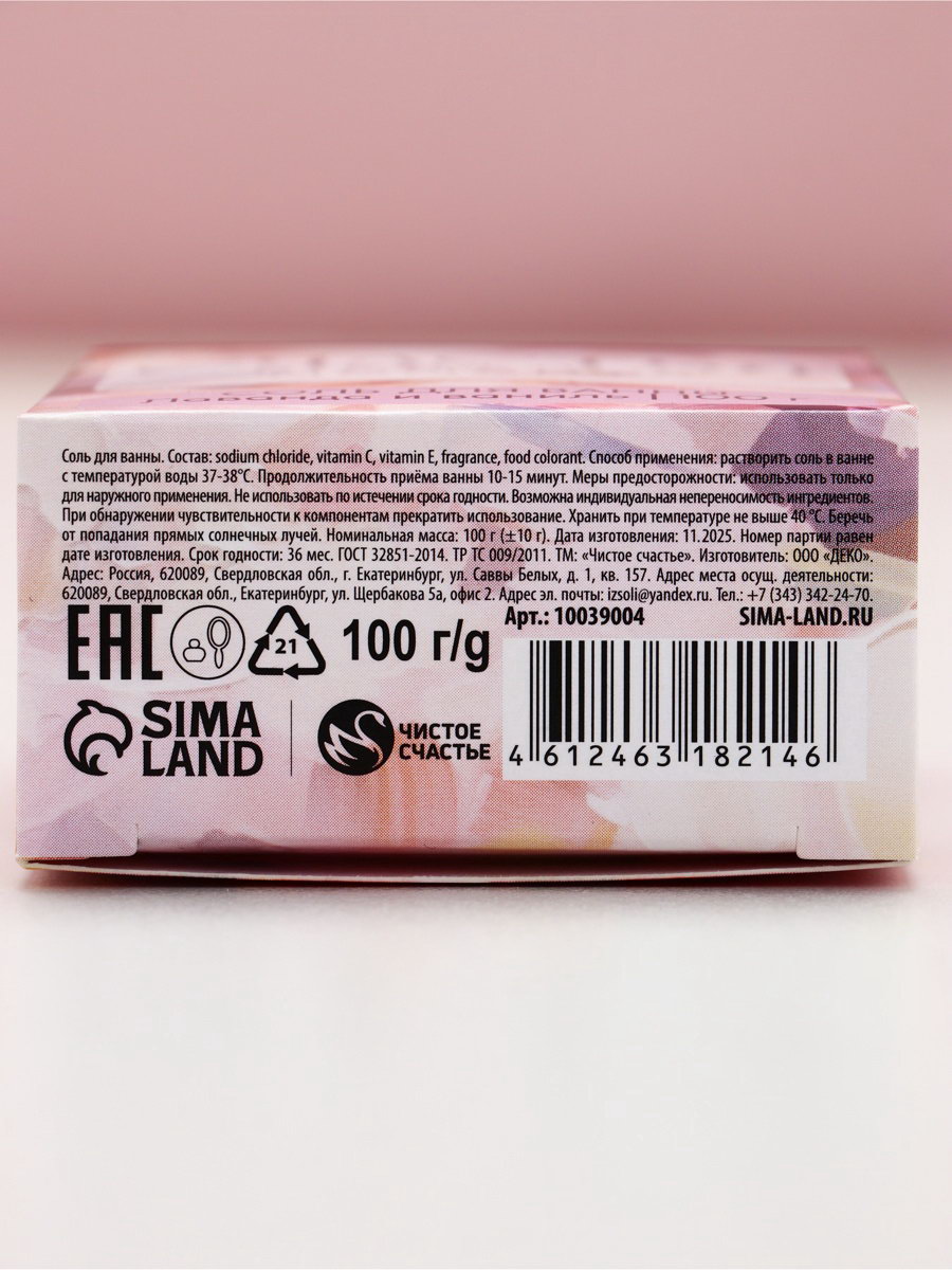 Соль для ванны "Счастья в каждом моменте!", 100 г, аромат лаванда и ваниль, Чистое счастье, Россия
