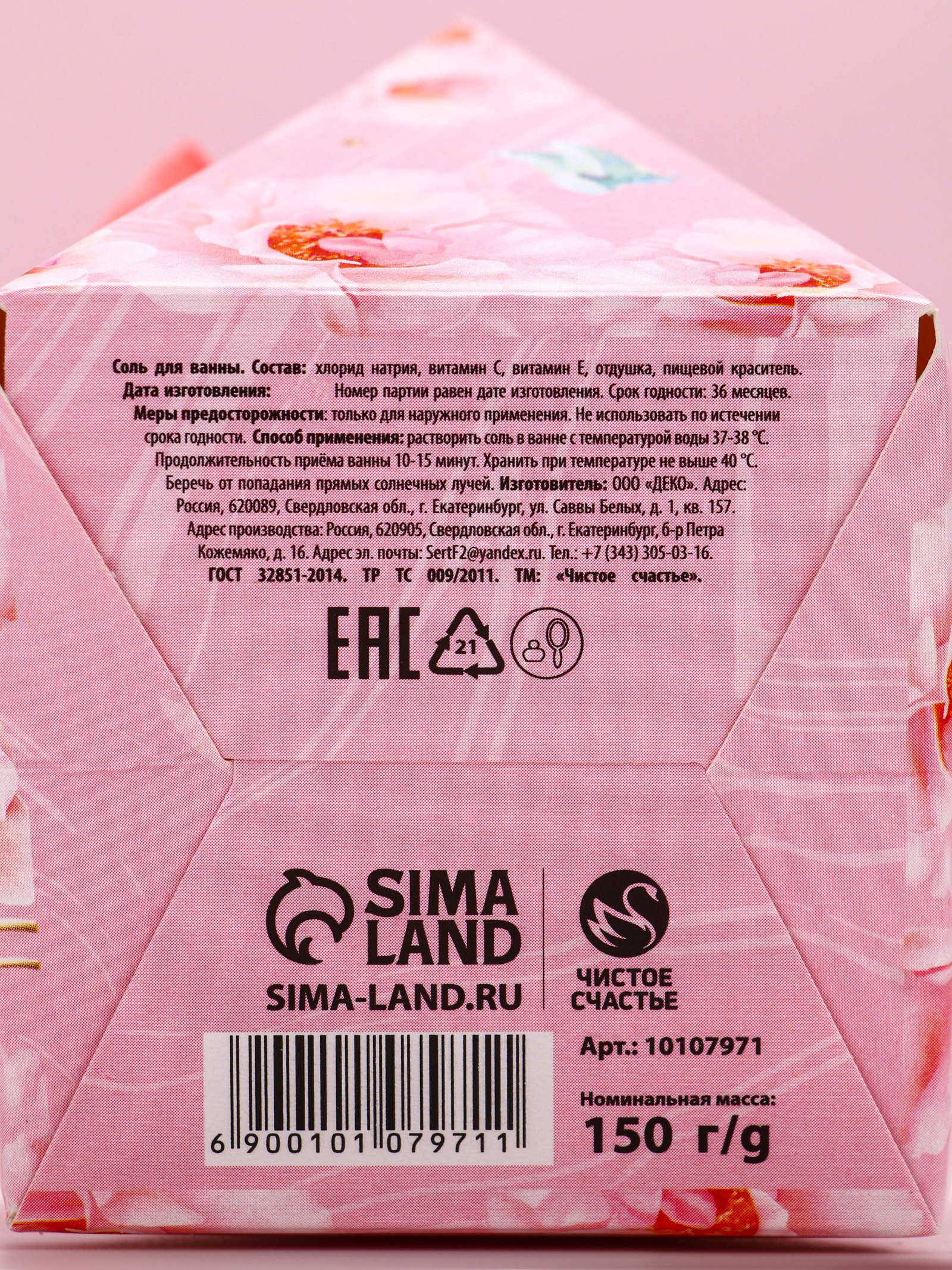 Соль для ванны "С 8 Марта!", 150 г, аромат ягод, Чистое счастье, Россия