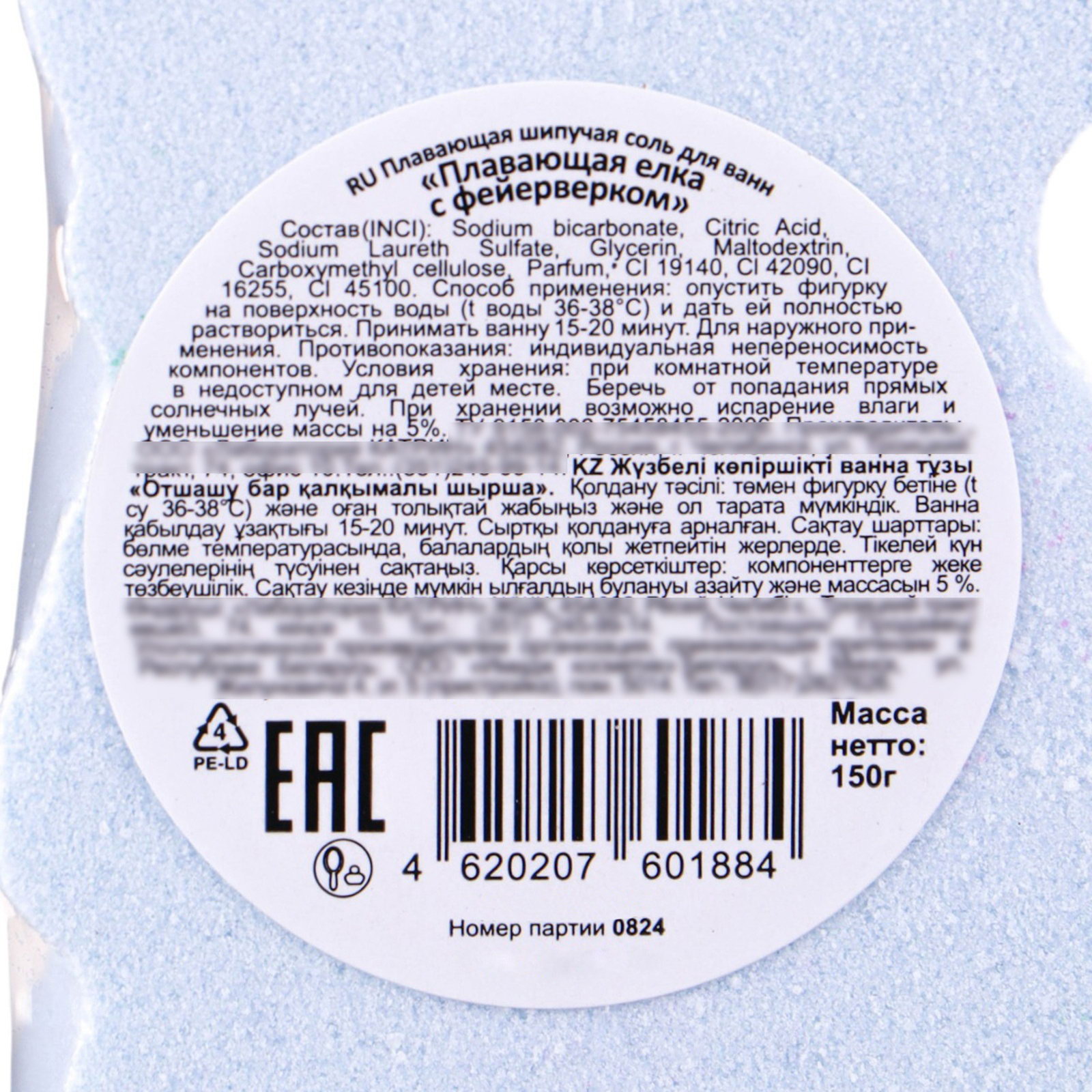 Бомбочка для ванн новогодняя "Елка плавающая с фейерверком", 150 г, Россия