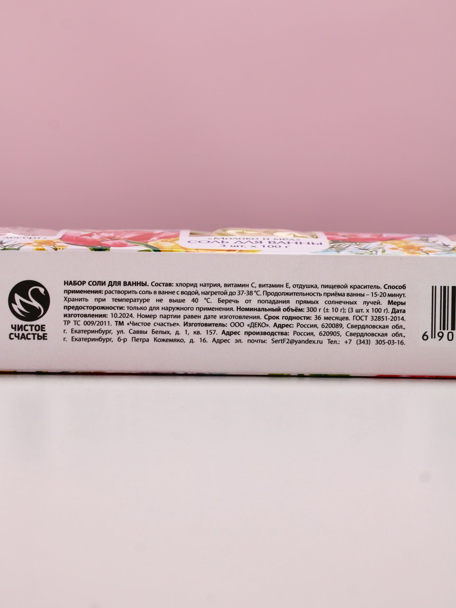 Подарочный набор "Самой прекрасной", соли для ванны, малина, молоко и мёд, лаванда 3x100 г, Чистое счастье, Россия