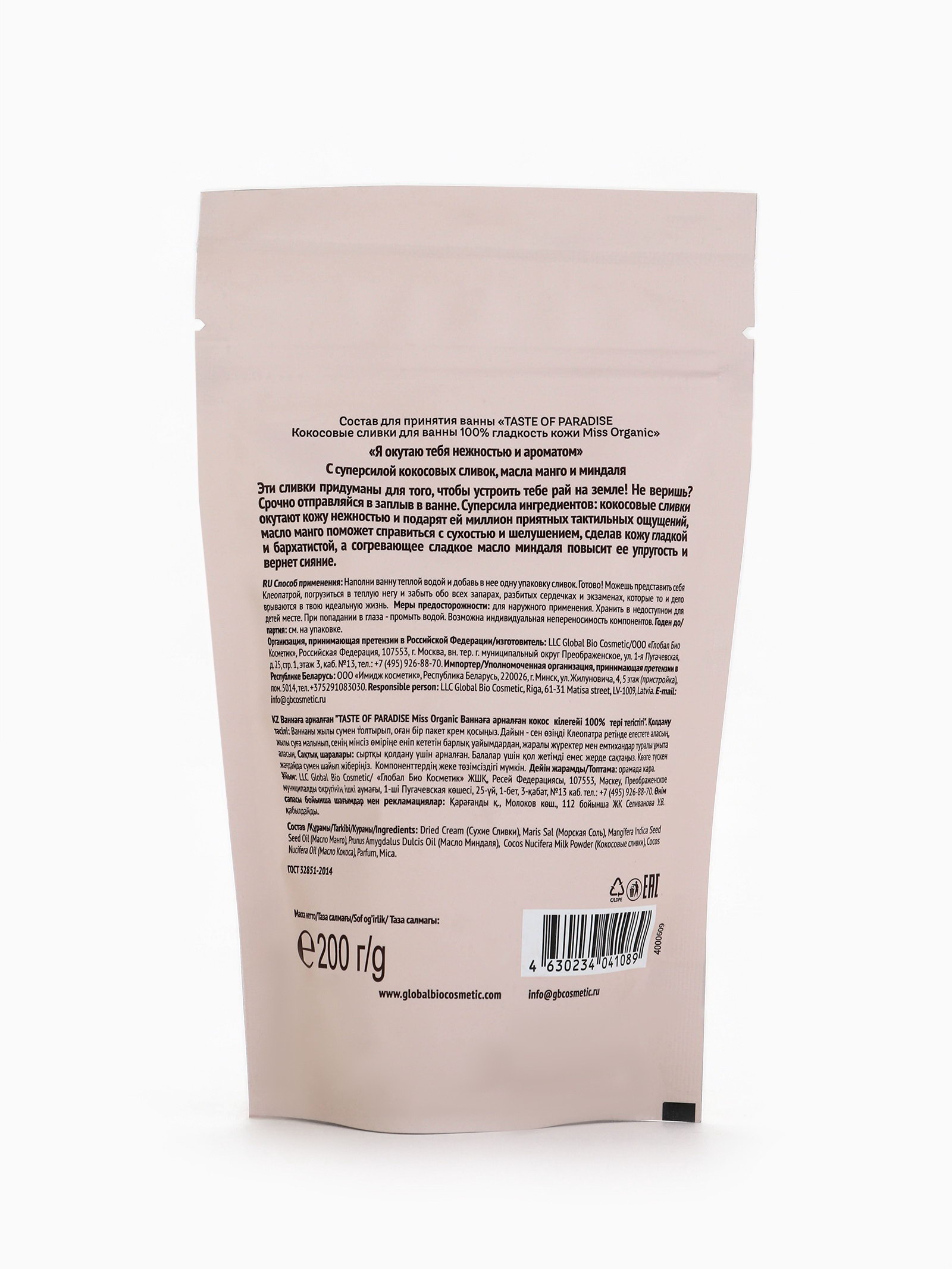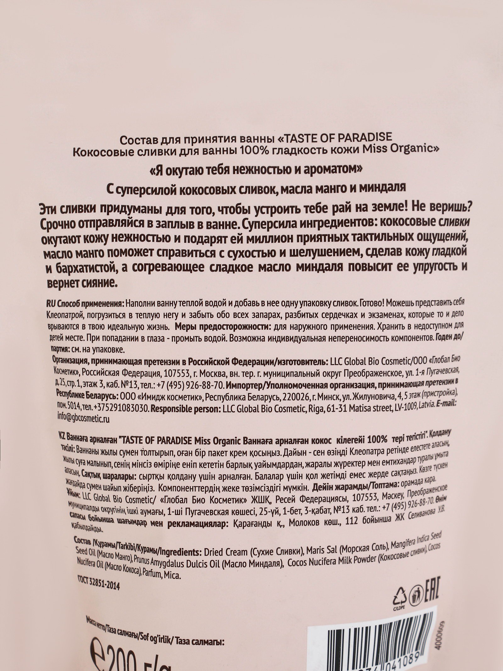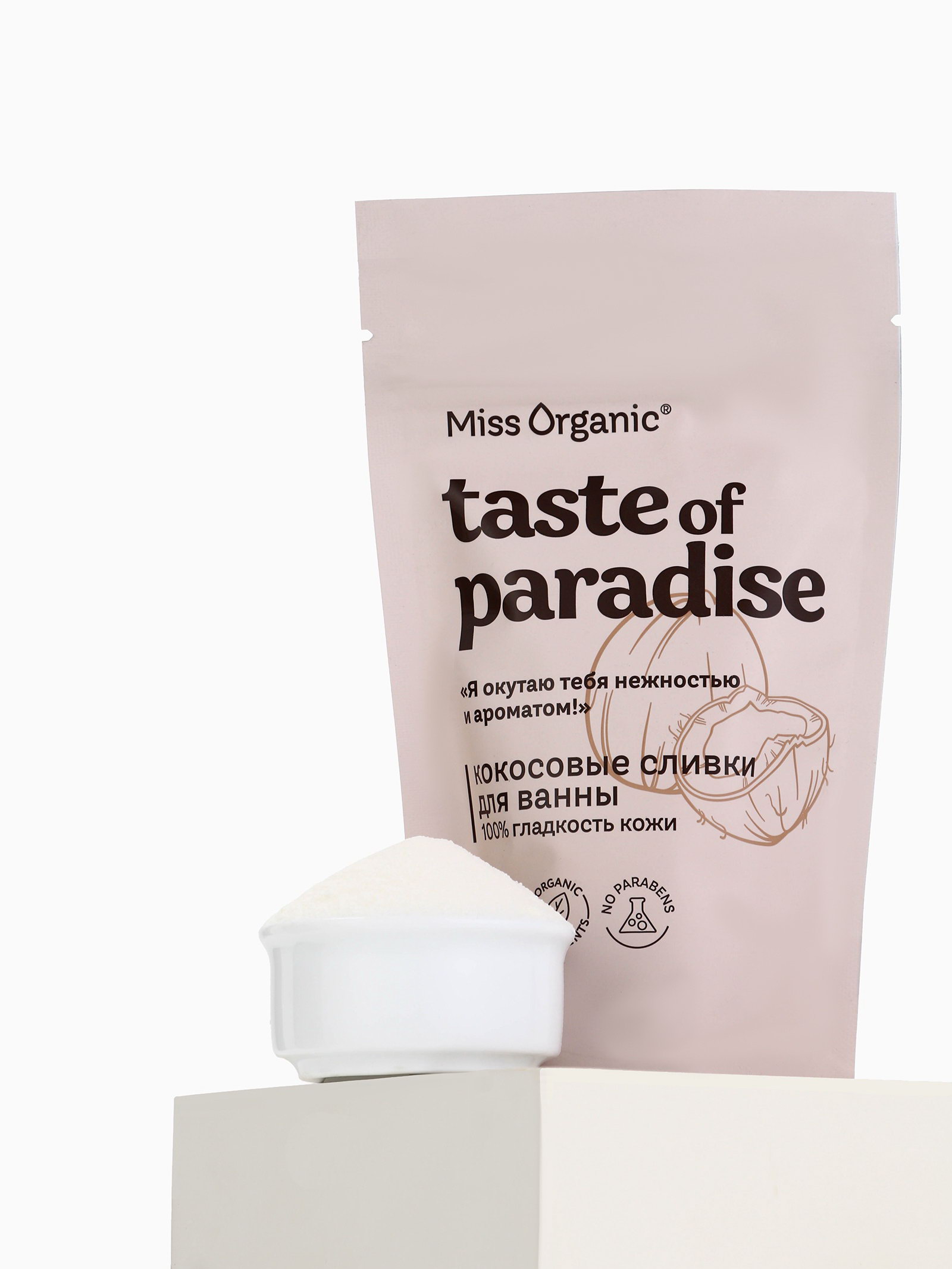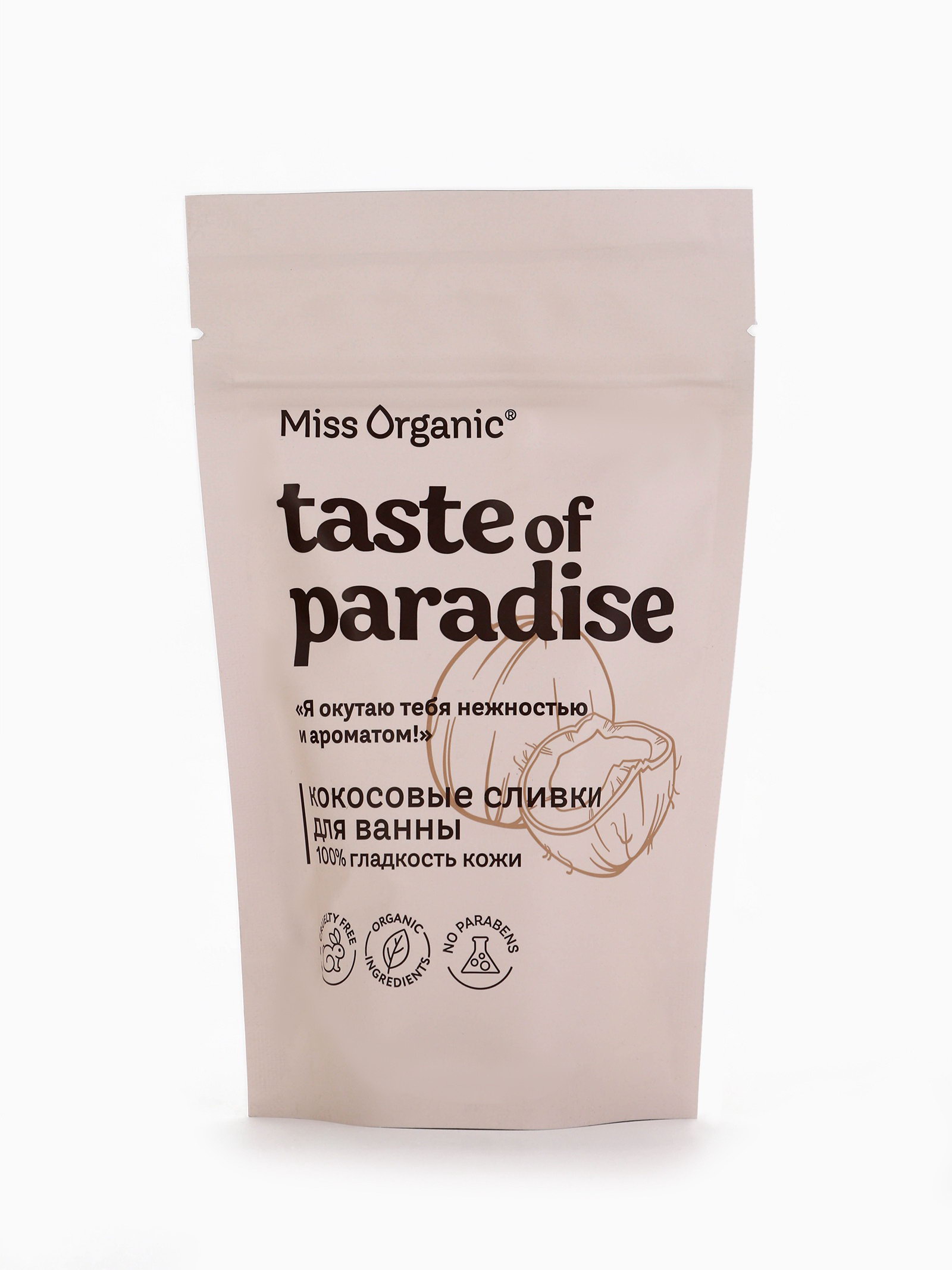 Кокосовые сливки для ванны 100% гладкость кожи TASTE OF PARADISE серии 200 г, Miss Organic, Россия