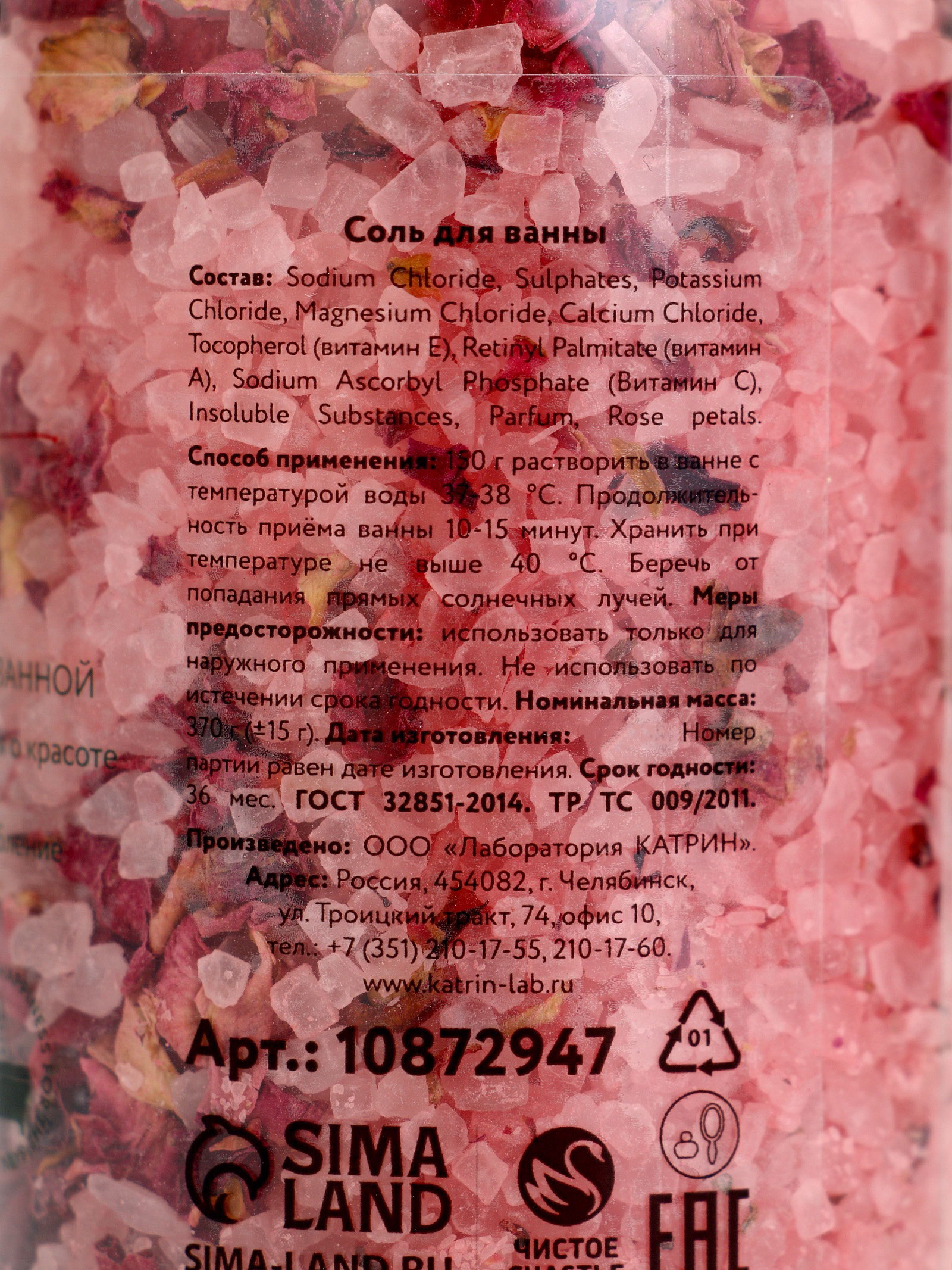 Соль для ванны с лепестками розы, 370 г, Чистое счастье, Россия