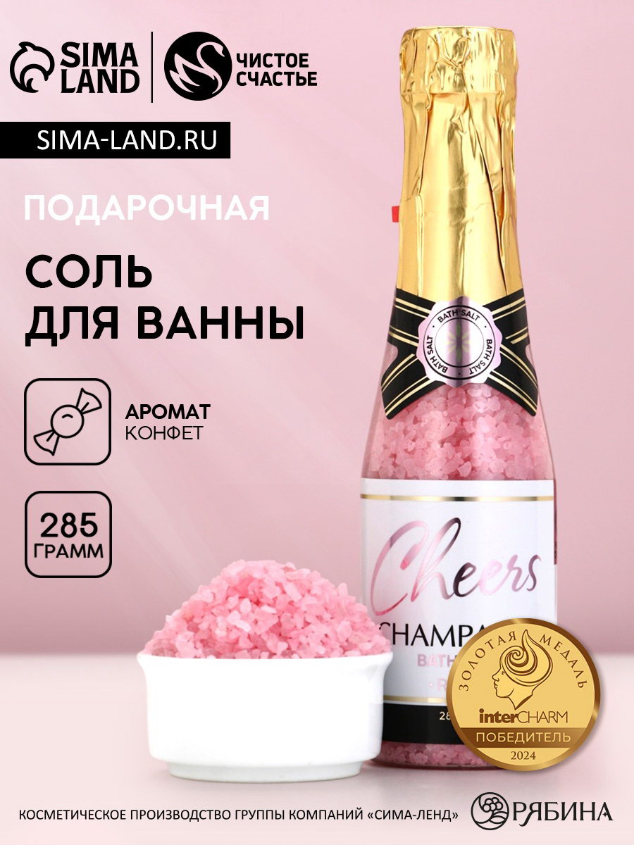 Соль для ванны Cheers Champagne, 285 г, конфетный аромат, Чистое счастье, Россия