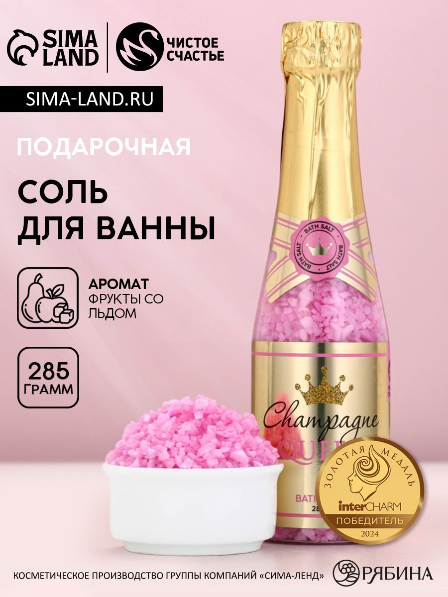 Соль для ванны Champagne Queen, 285 г, аромат фрукты со льдом, Чистое счастье, Россия