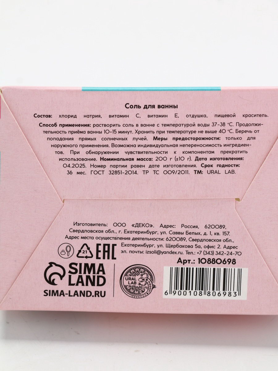 Соль для ванны, 200 г, аромат мятное мороженое, URAL LAB, Россия