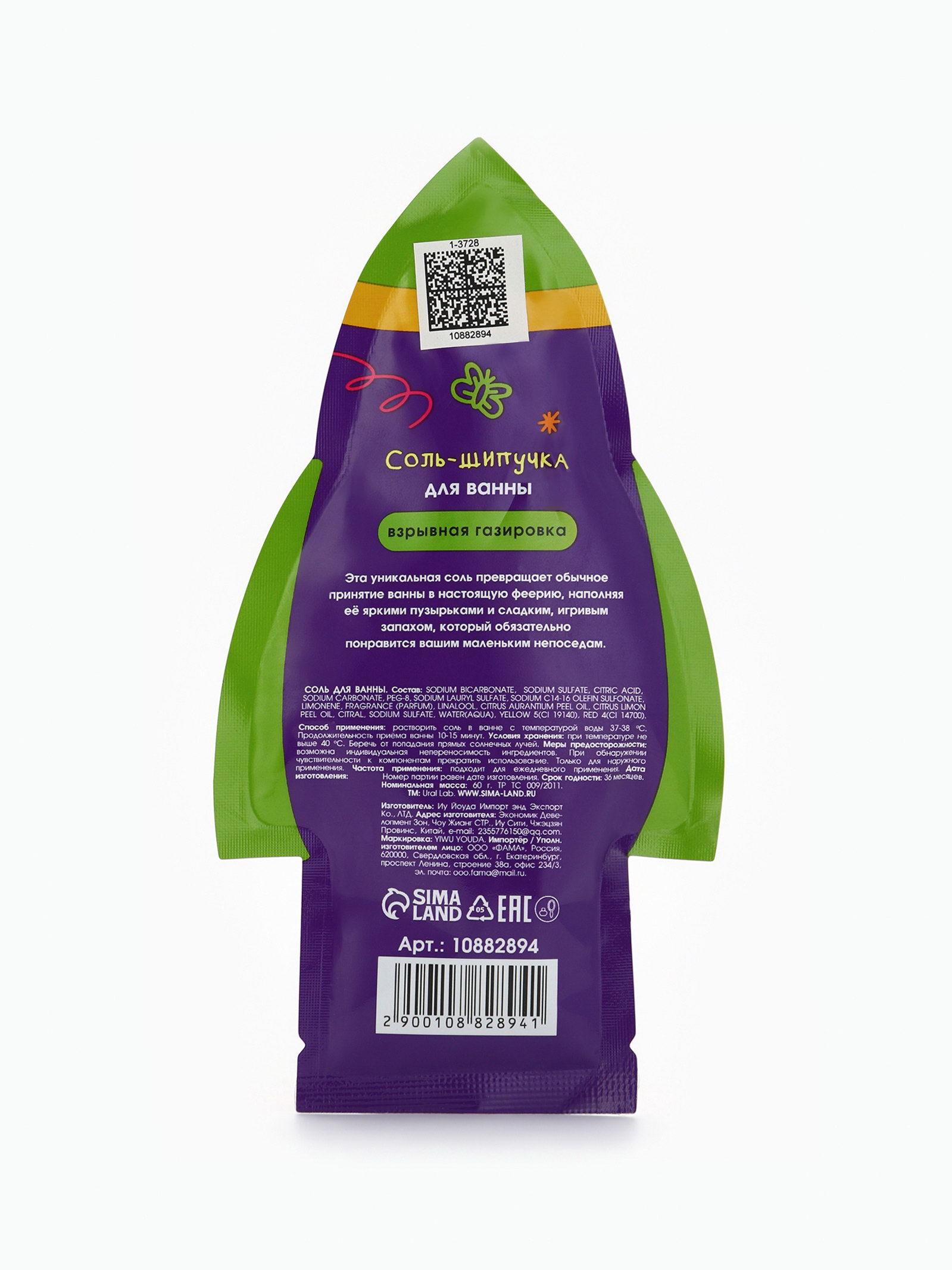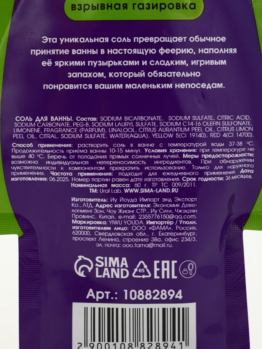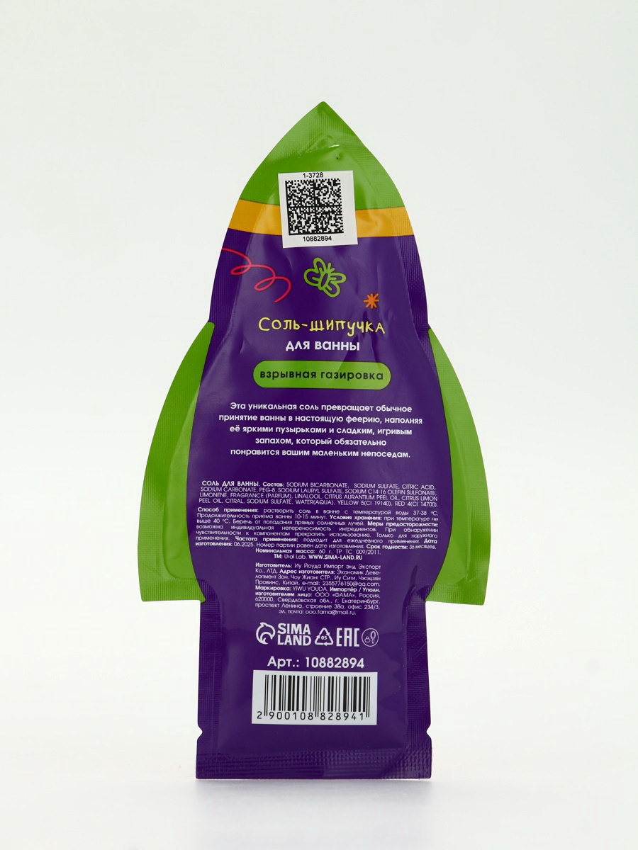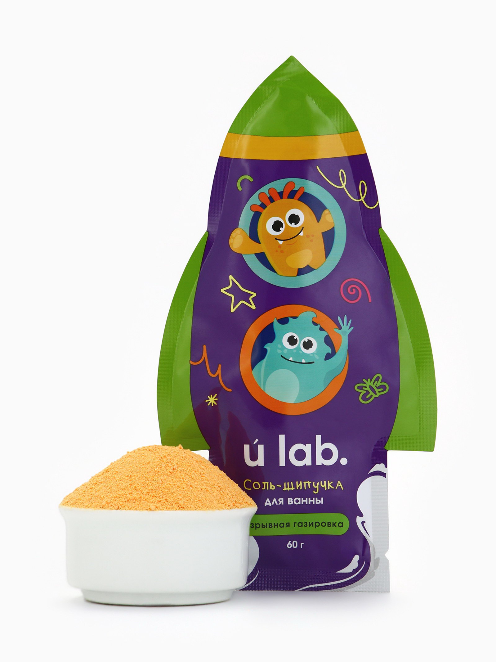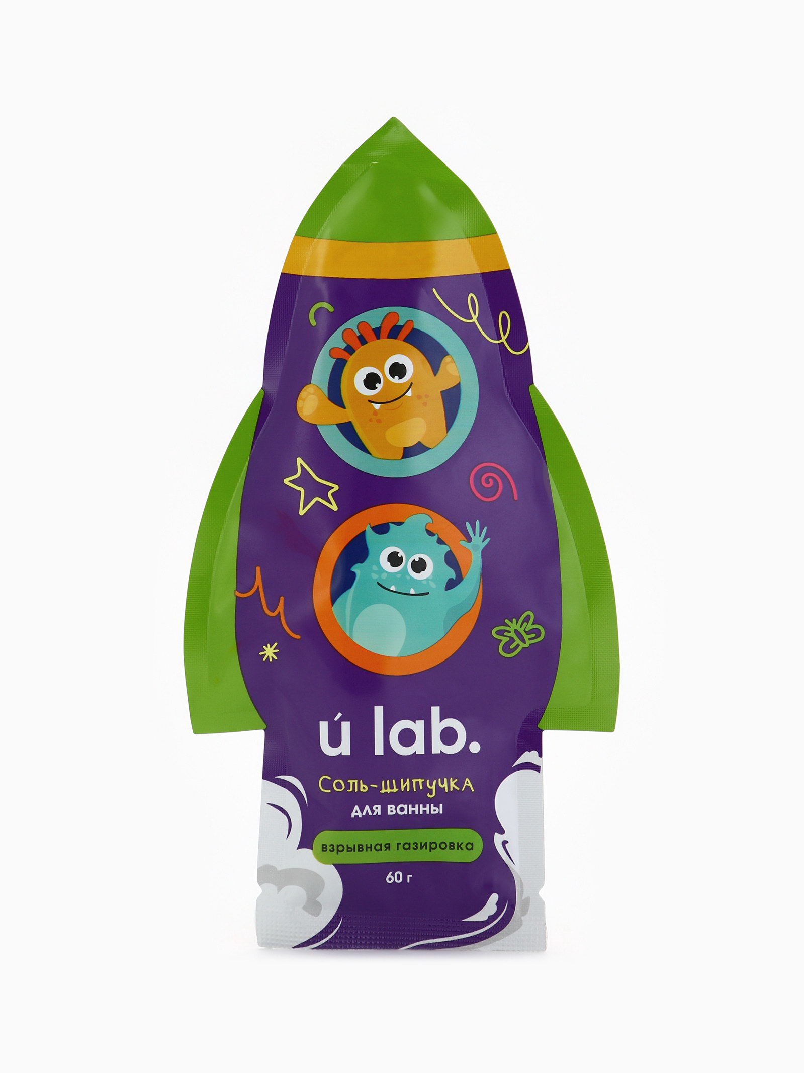Соль для ванны "Монстрики", 60 г, аромат взрывная газировка, ULAB, 1x10x19 см., URAL LAB, Китай