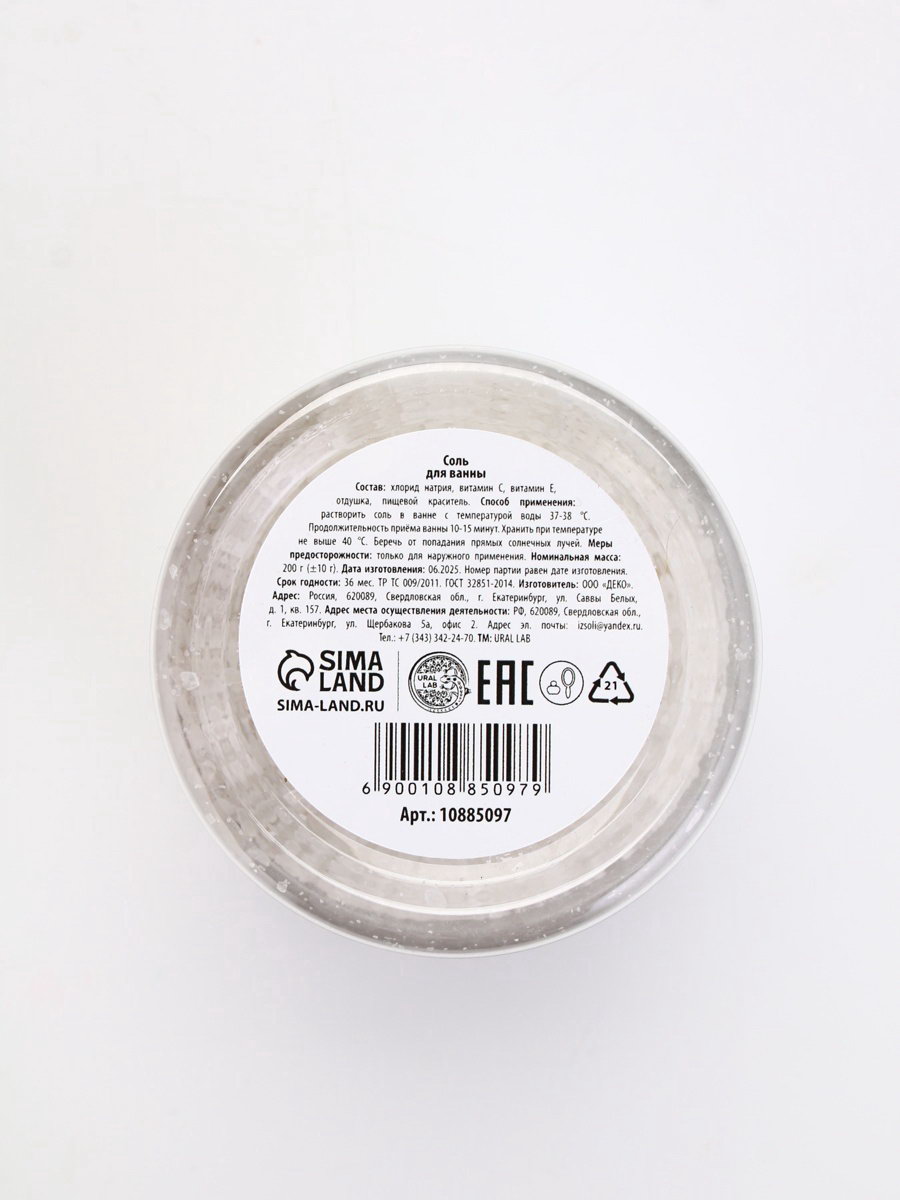 Соль для ванны с ароматом сливочного мандарина, 200 г, URAL LAB, Россия