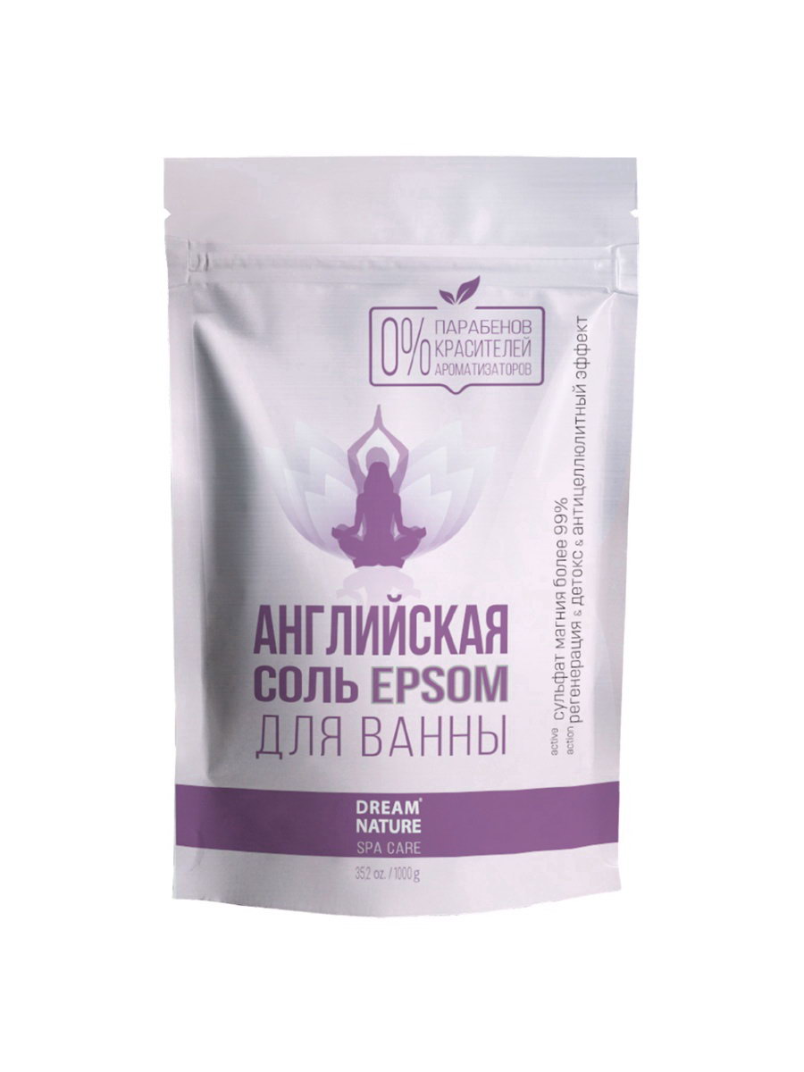 Размер упаковки: 8 x 8 x 22 см. Набор: Нет tnved: 3307300000 Вес, г: 1000 Вес, г: 1000 Температурное ограничение: Нет DREAM NATURE SPA CARE Английская соль для ванн, 1 кг натуральный источник магния (99,9%), обеспечивающий комплексный уход за телом и волосами. Соль подходит для ванн, ванночек для рук и ног, а также для скрабов для тела и волос. Эффекты и преимущества: