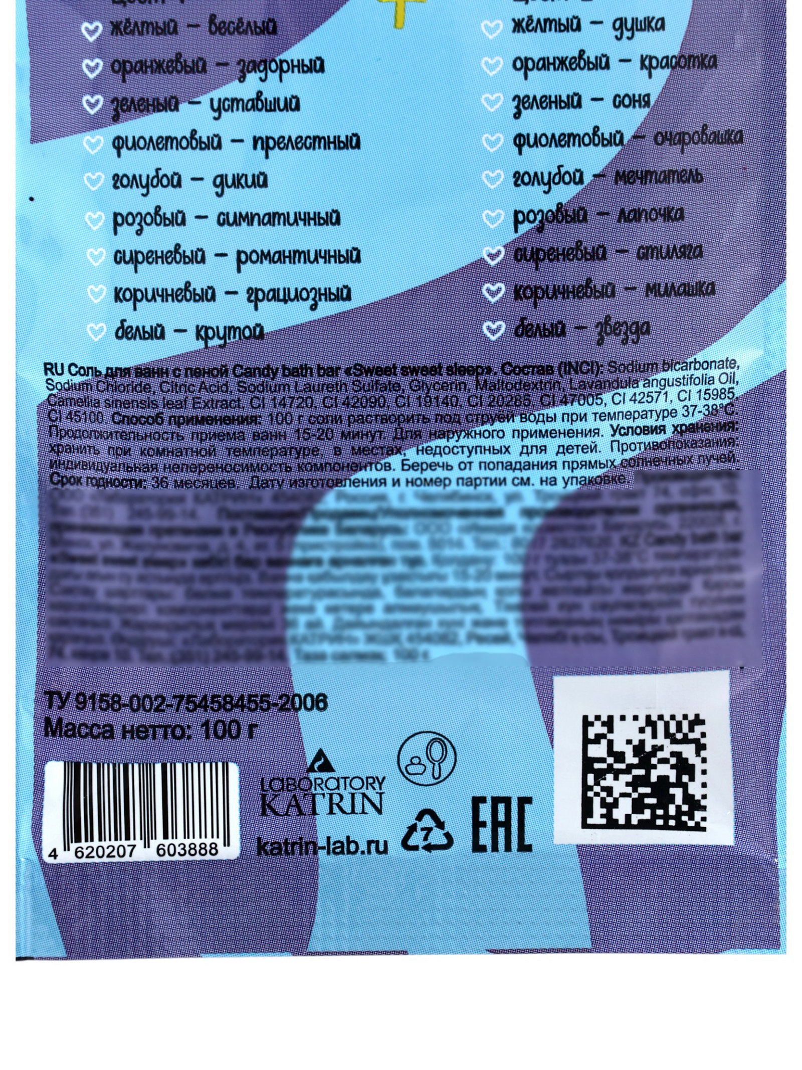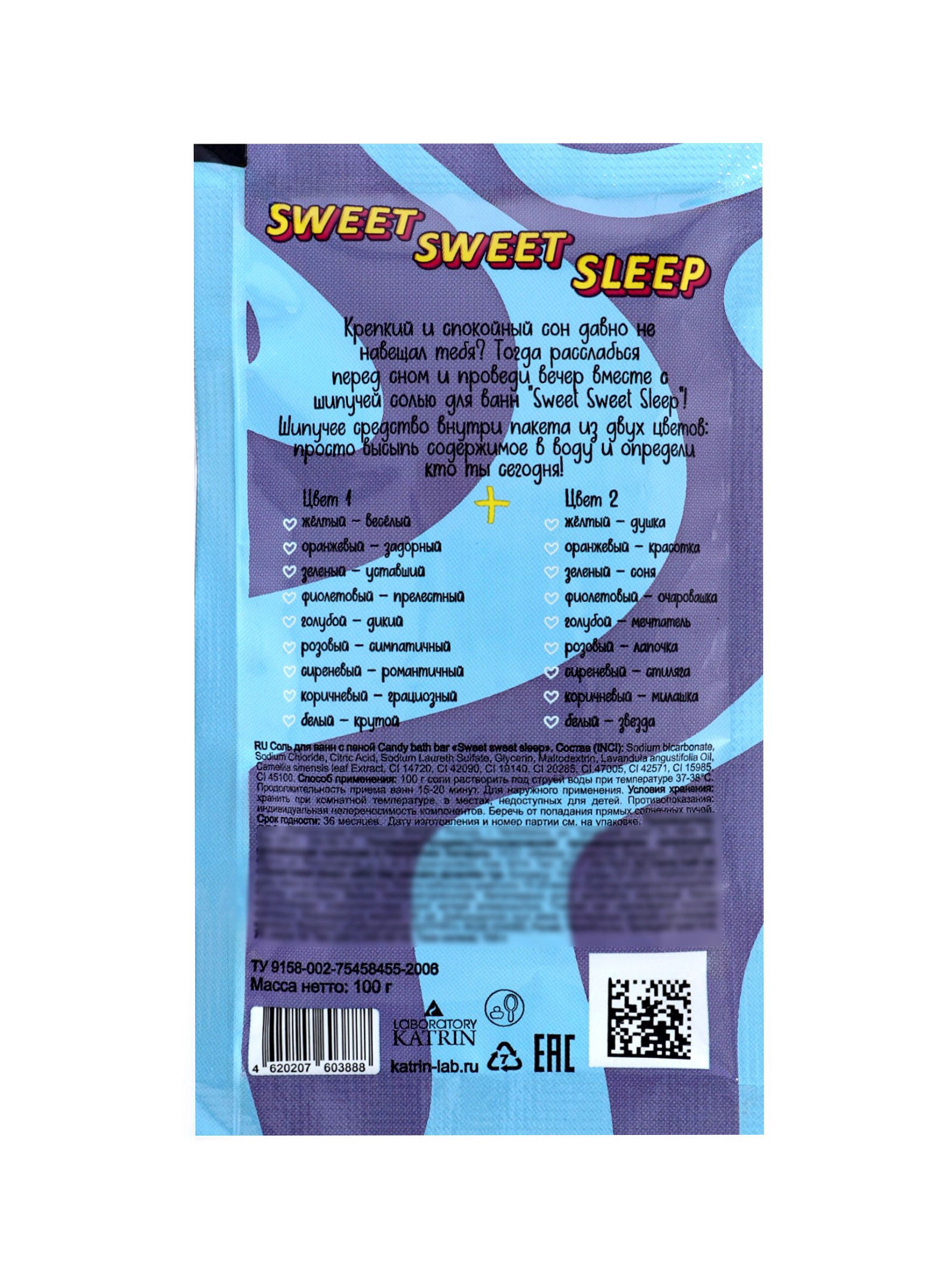 Соль для ванн шипучая Candy bath bar с пеной, 100 г, Laboratory Katrin, Россия