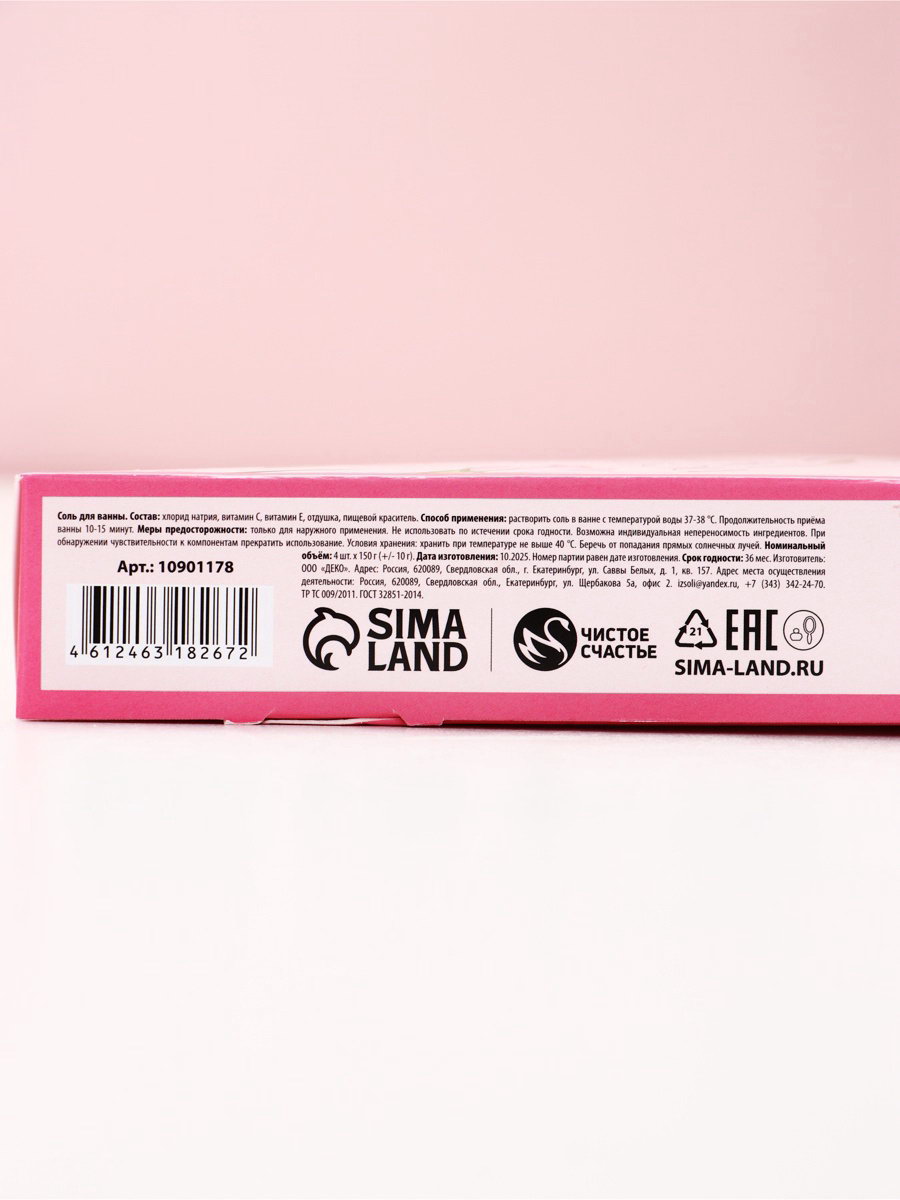 Соль для ванны, аромат нежный пион, 150 г, Чистое счастье, Россия