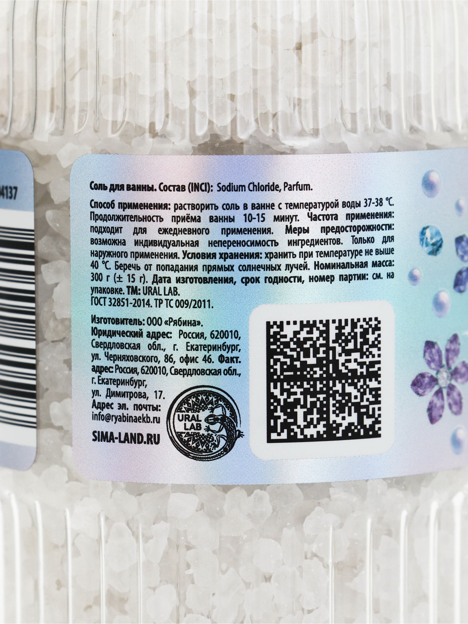 Соль для ванны, 300 г, аромат сливочный леденец, URAL LAB, Россия