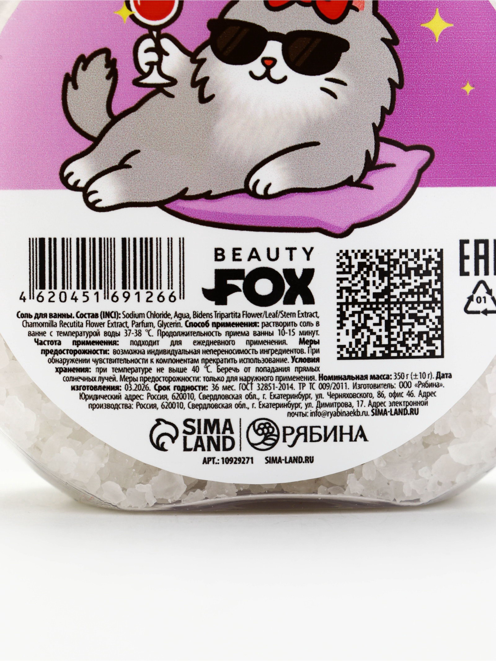 Соль для ванны "Смой стресс", 350 г, Beauty Fox, Россия