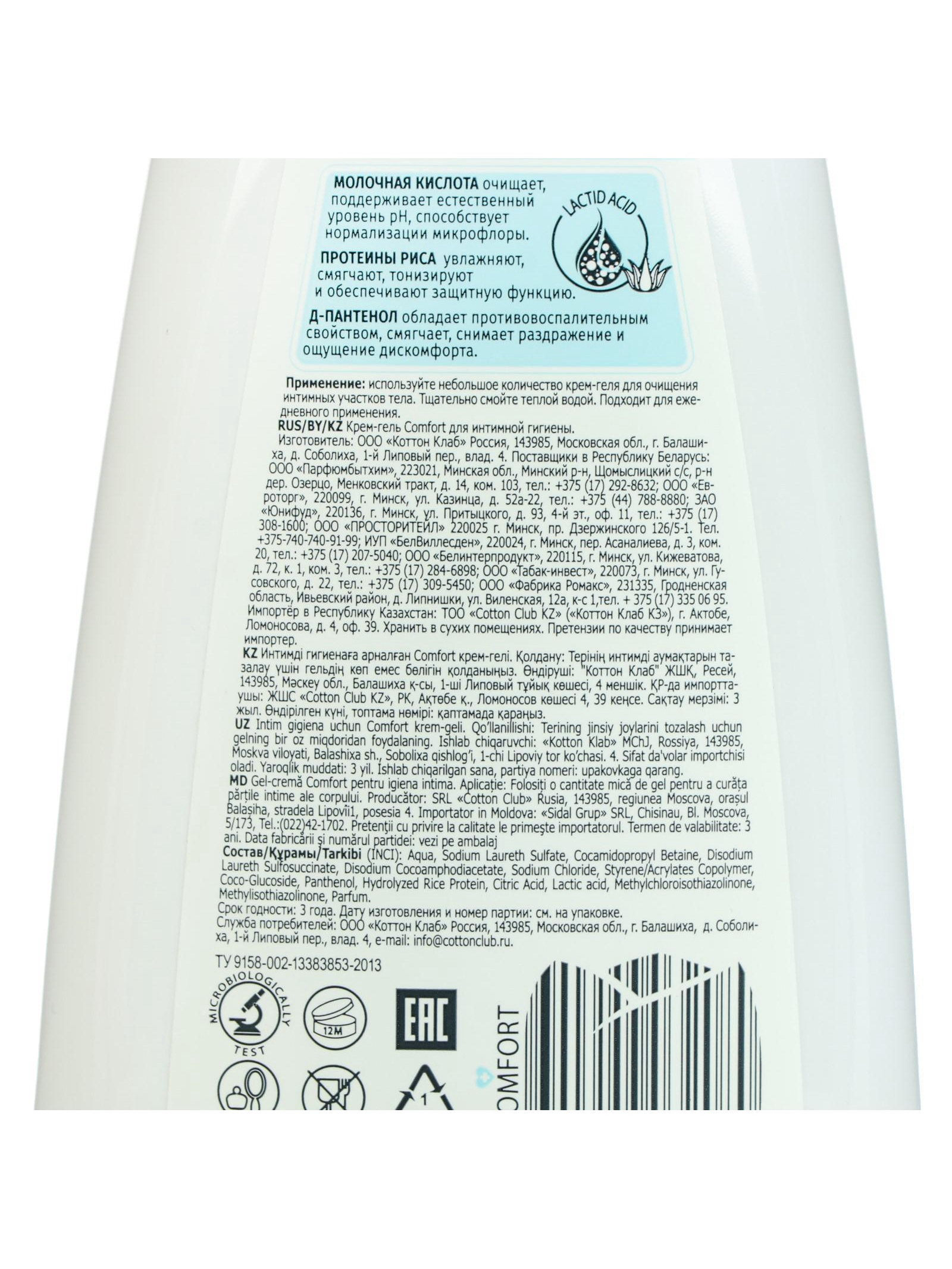 Размер упаковки: 4.5 x 19 x 7.5 см. tnved: 3304990000 Для кого: Для неё Для кого: Для неё Температурное ограничение: Нет Вид: Гель Крем-гель для интимной гигиены "Я самая", комфорт и увлажнение, 265 мл Нежный крем-гель обеспечивает мягкий и безопасный уход за интимной зоной каждый день. Формула с увлажняющими компонентами и экстрактами растений поддерживает естественный pH, предотвращает сухость и раздражение, оставляя ощущение комфорта и свежести. Подходит для чувствительной кожи, не содержит агрессивных мыл и парабенов. Способ применения: