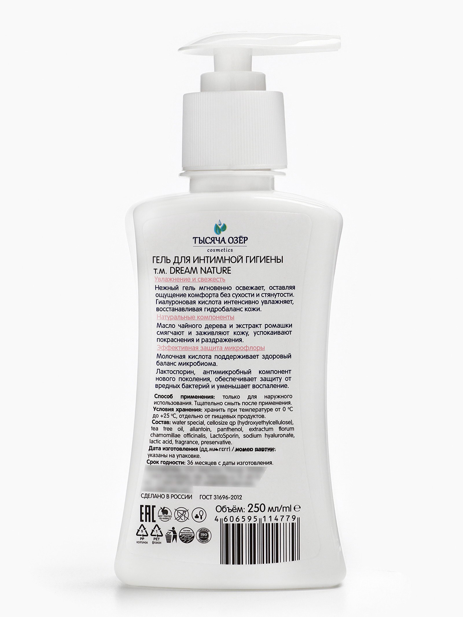 Гель для интимной гигиены Тысяча озер с д-пантенолом и экстрактом ромашки, 250 мл, 250 мл., Тысяча Озёр, Россия