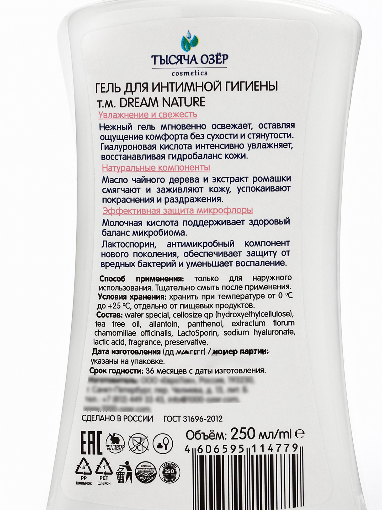 Гель для девочек подходит для ежедневного использования, не содержит парабенов и красителей, поэтому идеально подойдёт даже для самой чувствительной кожи. Благодаря натуральному и гипоаллергенному составу интим гель для подмывания можно использовать в период беременности и кормления грудью. Приобретая средство для интимной гигиены "Тысяча Озер" вы будете чувствовать себя уверенно и комфортно каждый день! Способ применения: необходимое количество геля нанести на влажную кожу интимной зоны, вспенить, а затем тщательно смыть теплой водой. Подходит для ежедневного применения. Только для наружного использования Состав: Water special, cellosize qp (hydroxyethylcellulose), alkyl polyglucoside, tea tree oil (масло чайного дерева), allantoin (аллантоин), panthenol (пантенол), extractum florum chamomillae officinalis (экстракт ромашки), LactoSporin (лактоспорин), sodium hyaluronate (натриевая соль гиалуроновой кислоты), lactic acid (молочная кислота), fragrance, preservative | ||