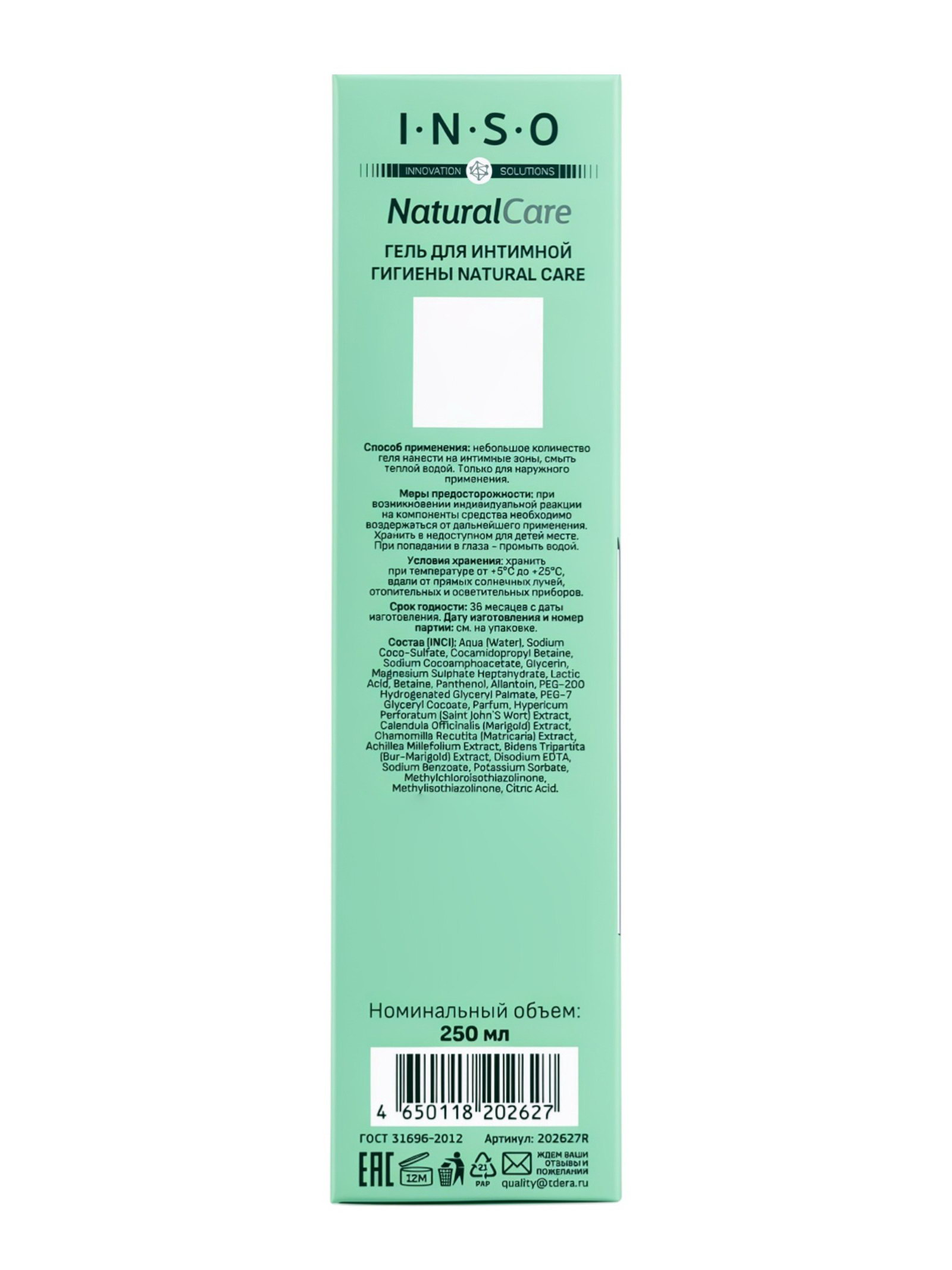 Гель для интимной гигиены Natural Care, 250 мл, Inso, Россия
