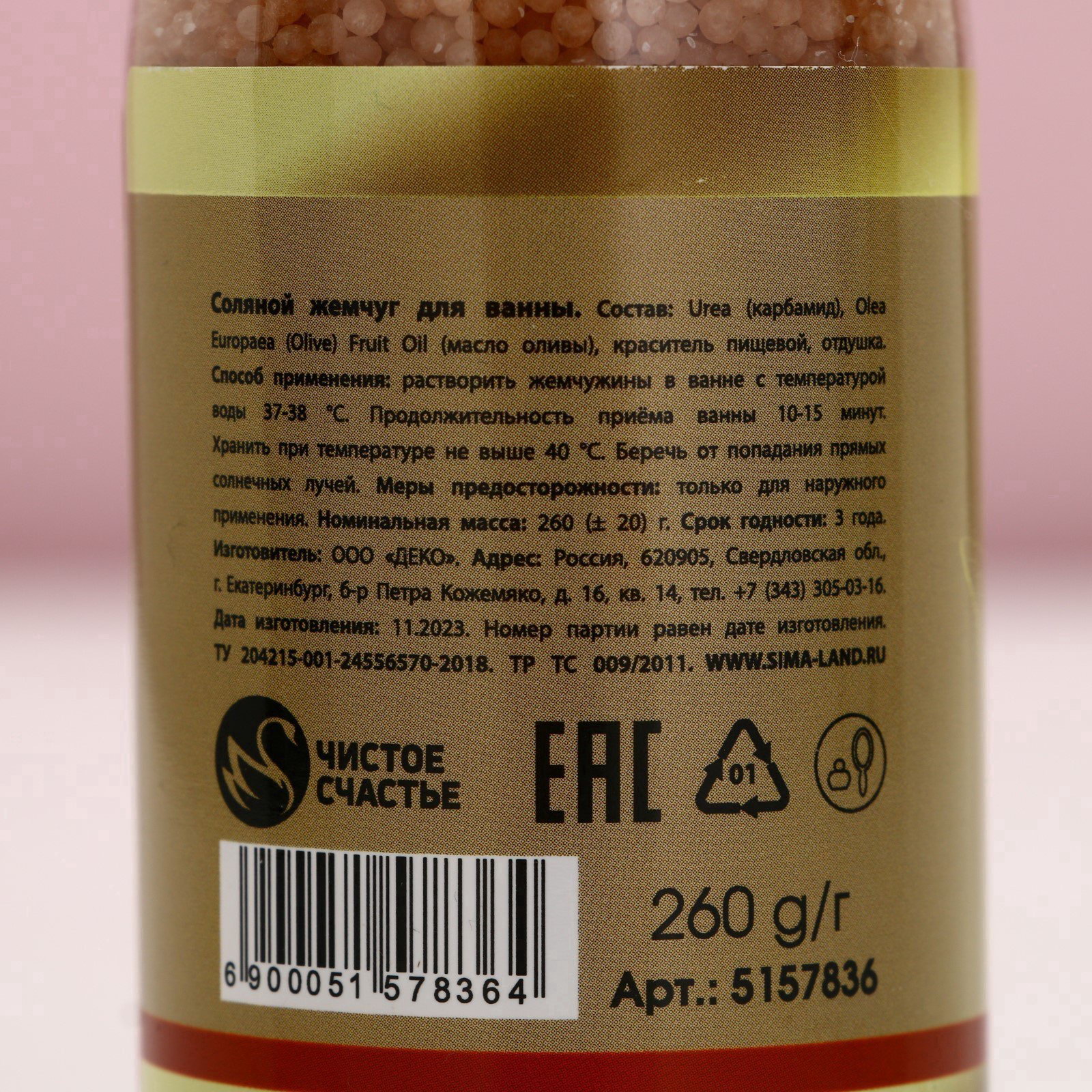 Жемчуг для ванны, 260 г, аромат ванили и молока, 260 мл., Чистое счастье, Россия