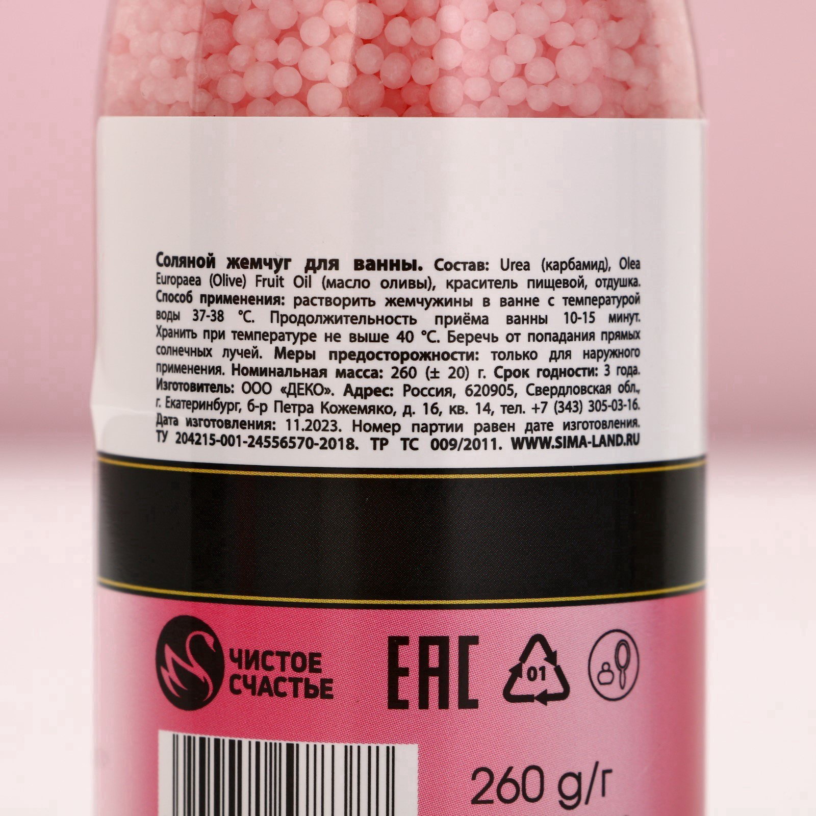 Жемчуг для ванны "Самая нежная", 260 г, аромат розы, 260 мл., Чистое счастье, Россия