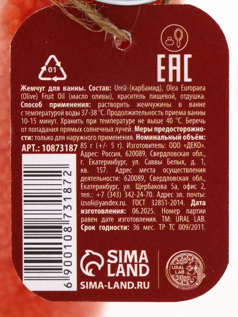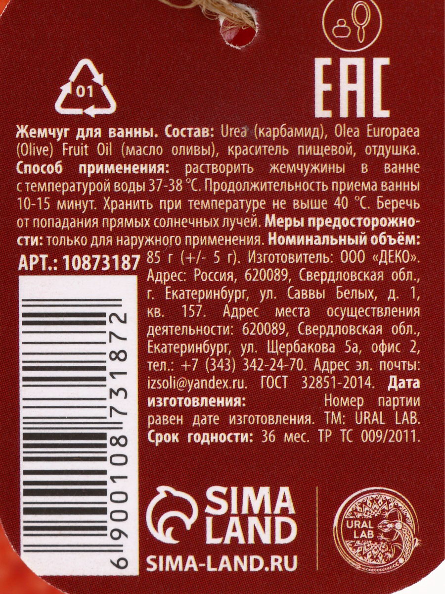 Жемчуг для ванны во флаконе, 85 г, аромат пряный глинтвейн, URAL LAB, Россия
