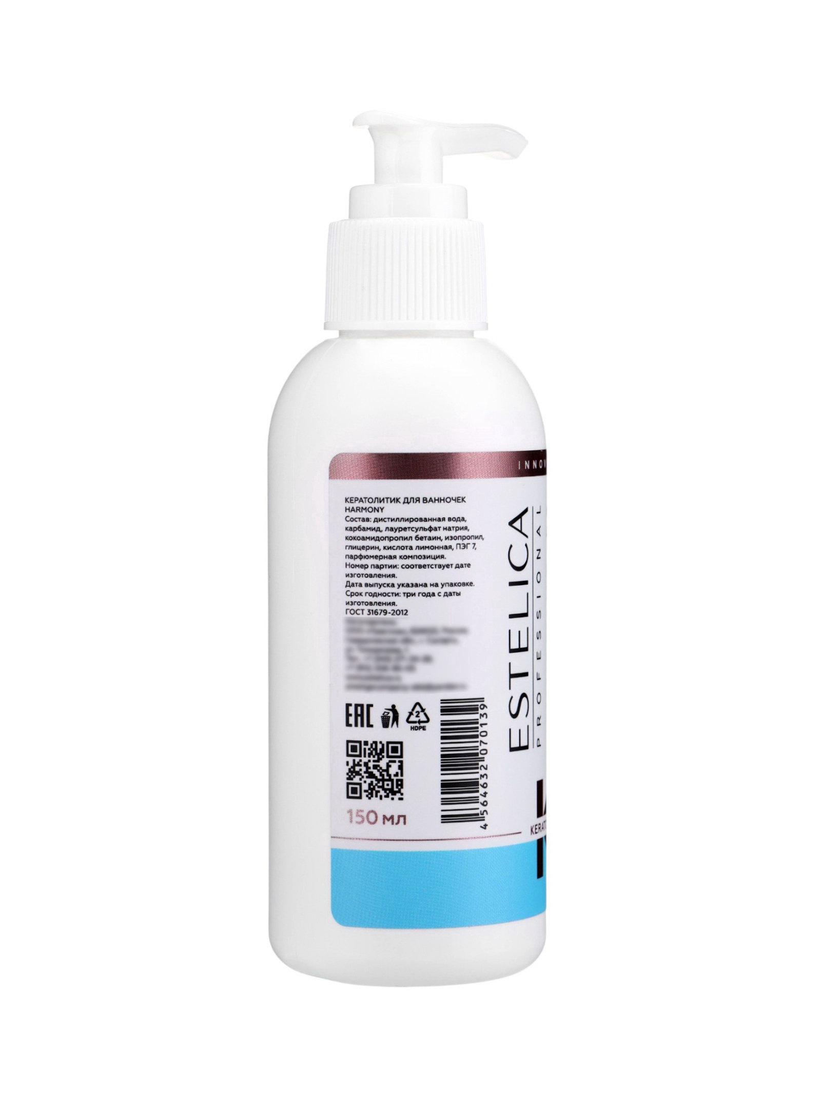 Размер упаковки: 4.7 x 4.7 x 14.5 см. tnved: 3304990000 Назначение: Пилинг, отшелушивание Вид: Кератогель Температурное ограничение: Нет Температурное ограничение: Нет ESTELICA PROFESSIONAL HARMONY, кератолитик для ванночек 150 мл (дозатор) профессиональное средство для подготовки к маникюру и педикюру. Эффективно размягчает огрубевшие участки кожи ног, рук и кутикулы, облегчая последующую обработку. Подходит для всех видов маникюра и педикюра, обеспечивая мягкую и деликатную обработку кожи. Способ применения: добавить от 3 до 10 нажатий дозатора в ванночку в зависимости от объема. Залить тёплой водой средство вспенивается. Подержать руки или ноги в ванночке 5–10 минут, затем приступить к обработке. Для сложных участков нанесите средство на ватный диск и приложите на 2–3 минуты. После процедуры рекомендуется нанести на обработанную поверхность нейтрализатор RECOVERY, дать ему впитаться и промыть руки или ноги. Меры предосторожности: работать в перчатках. Возможна индивидуальная непереносимость компонентов. Использовать только по назначению. Избегать прямого воздействия солнечных лучей. При попадании в глаза промыть водой. Хранить при температуре +5…+25?°C. Состав: карбамид, лауретсульфат натрия, кокоамидопропил бетаин, изопропил, дистиллированная вода, глицерин, лимонная кислота, ПЭГ-7, парфюмерная композиция. | ||