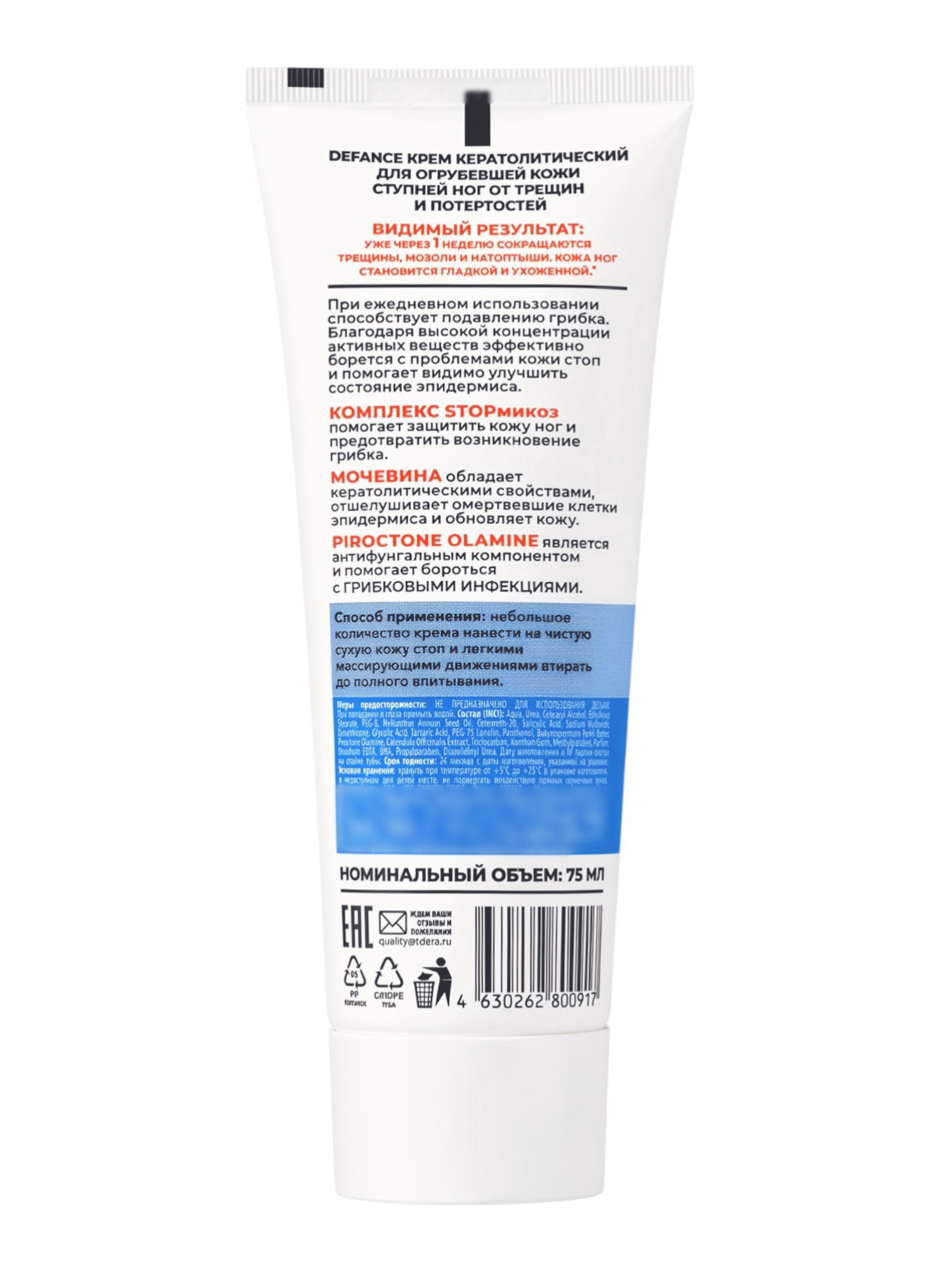 Крем кератолитический для ног MEDIS, против огрубевшей кожи ступней, трещин, потёртостей и г, DEFANCE, Россия