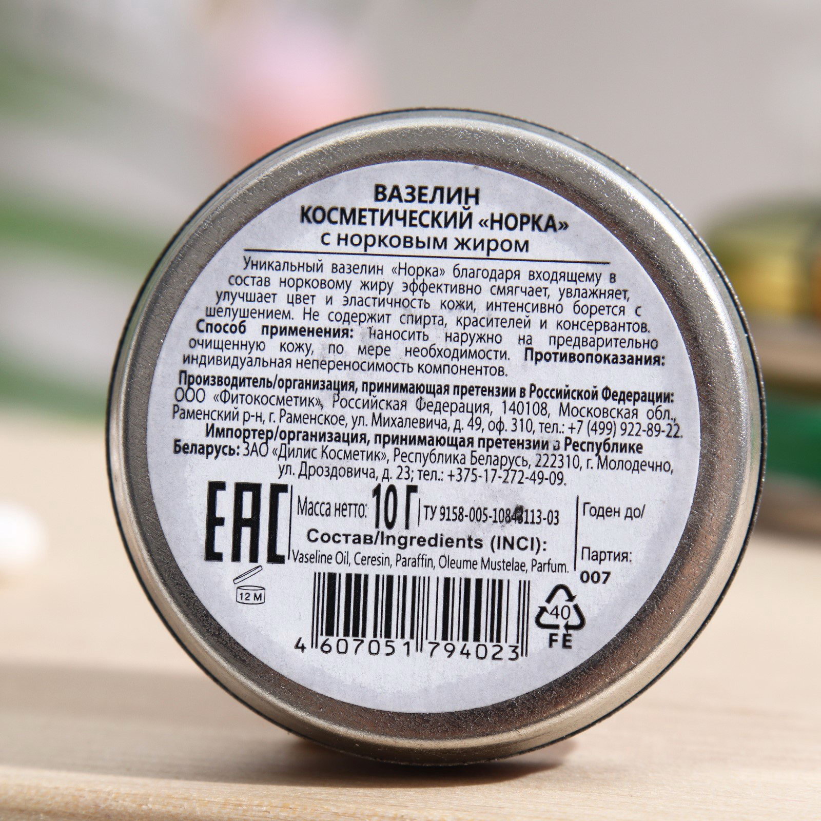 Вазелин косметический "Норка" с норковым жиром, 10 г, 1x5x5 см., Fitoкосметик, Россия