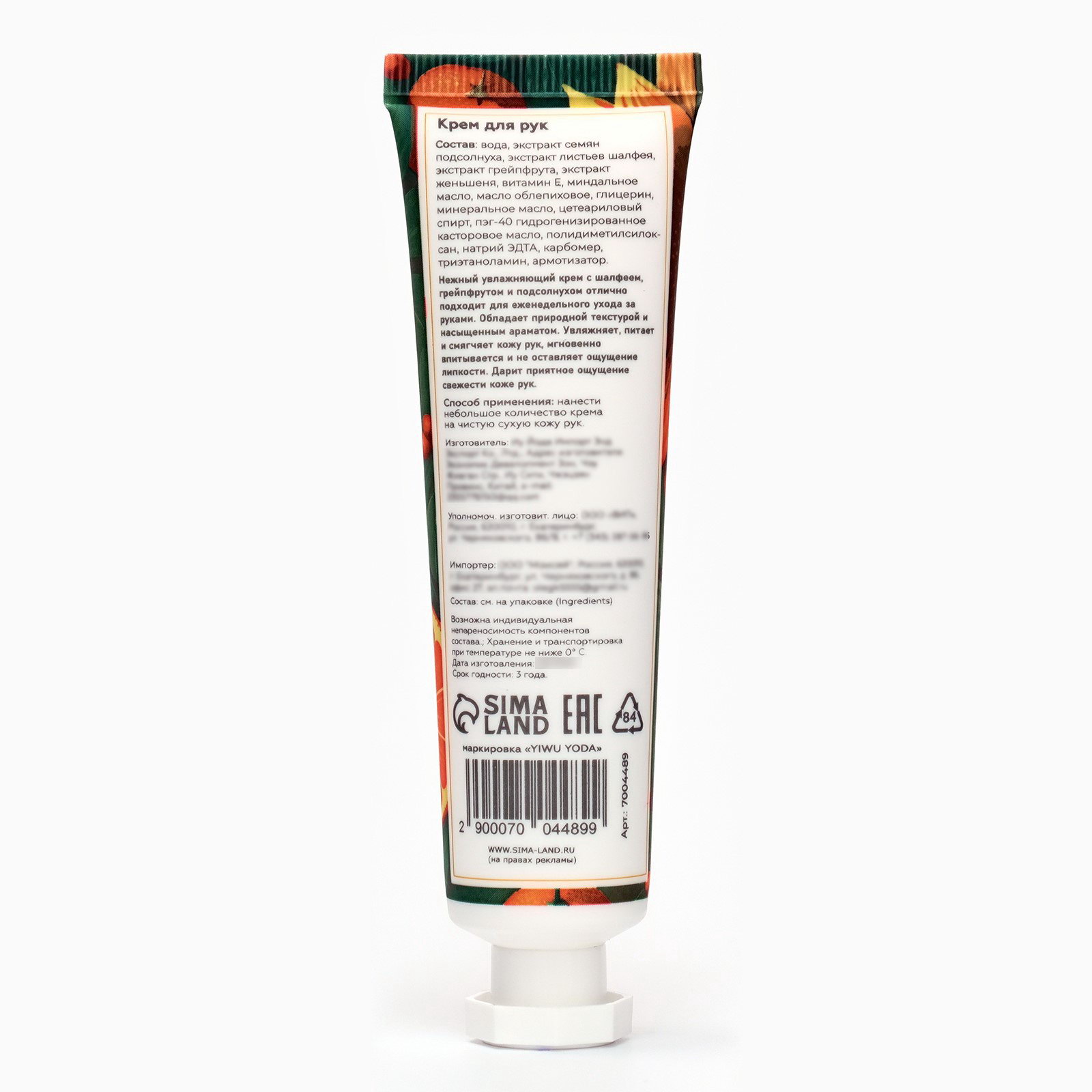 Крем для рук "Подсолнух, шалфей, грейпфрут" увлажняющий, 30 мл МИКС, 4x11.5x3 см., Flowerstory, Китай