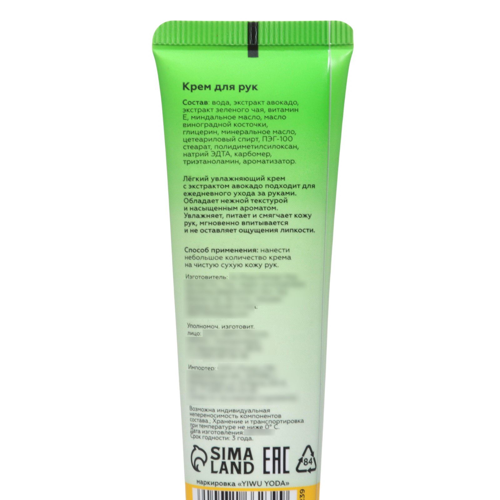 Крем для рук с экстрактом авокадо, увлажняющий, 30 мл, 4x11.5x3 см., SB BEAUTY, Китай