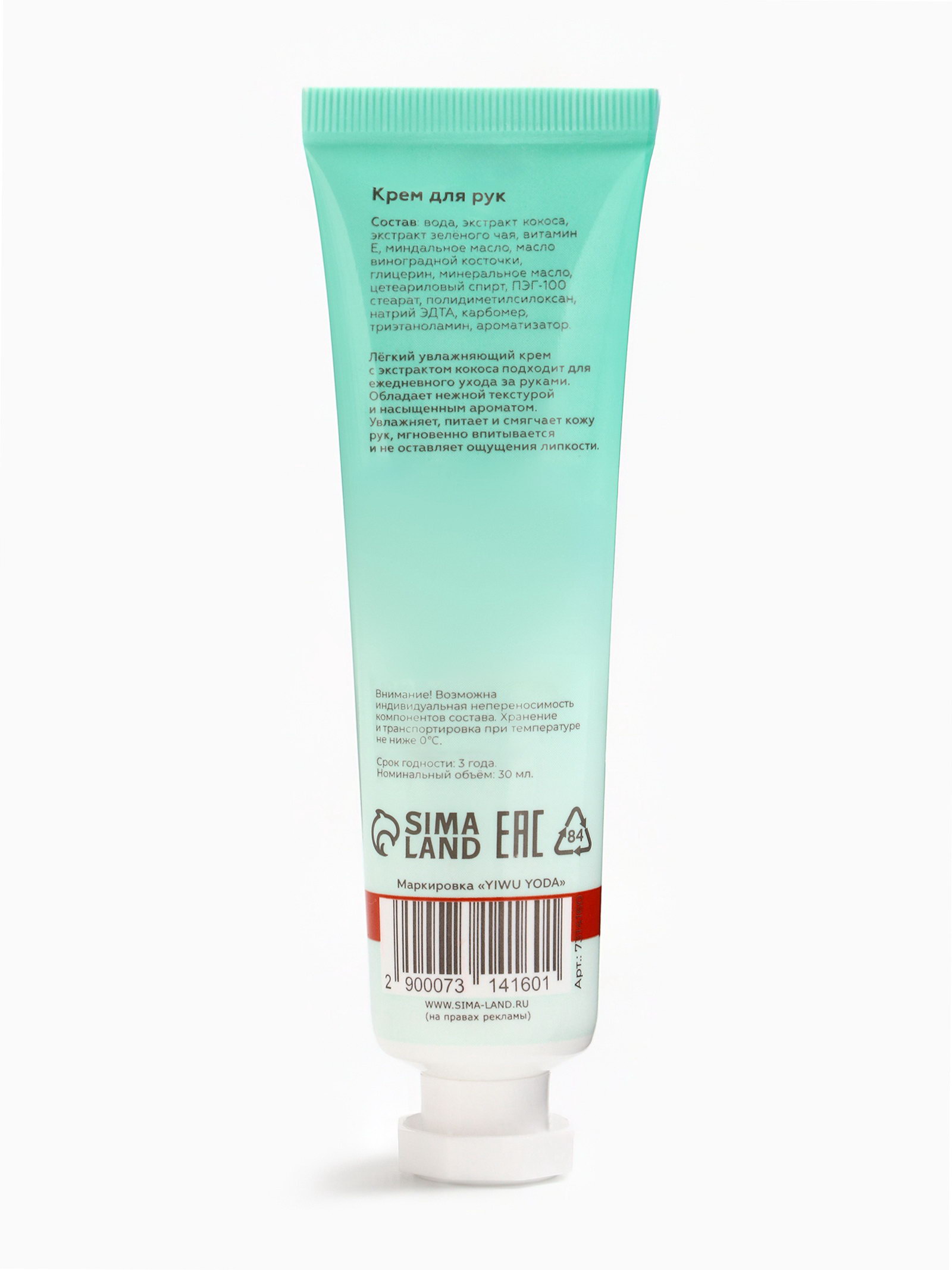 Крем для рук "Кокос" увлажняющий, 30 мл, 3x4x11 см., MIYUELENI, Китай