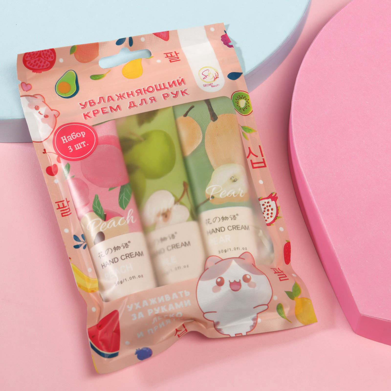 Крем для рук "Фруктовый микс", набор 3 шт., 10x10x5 см., Secret Beauty, Китай