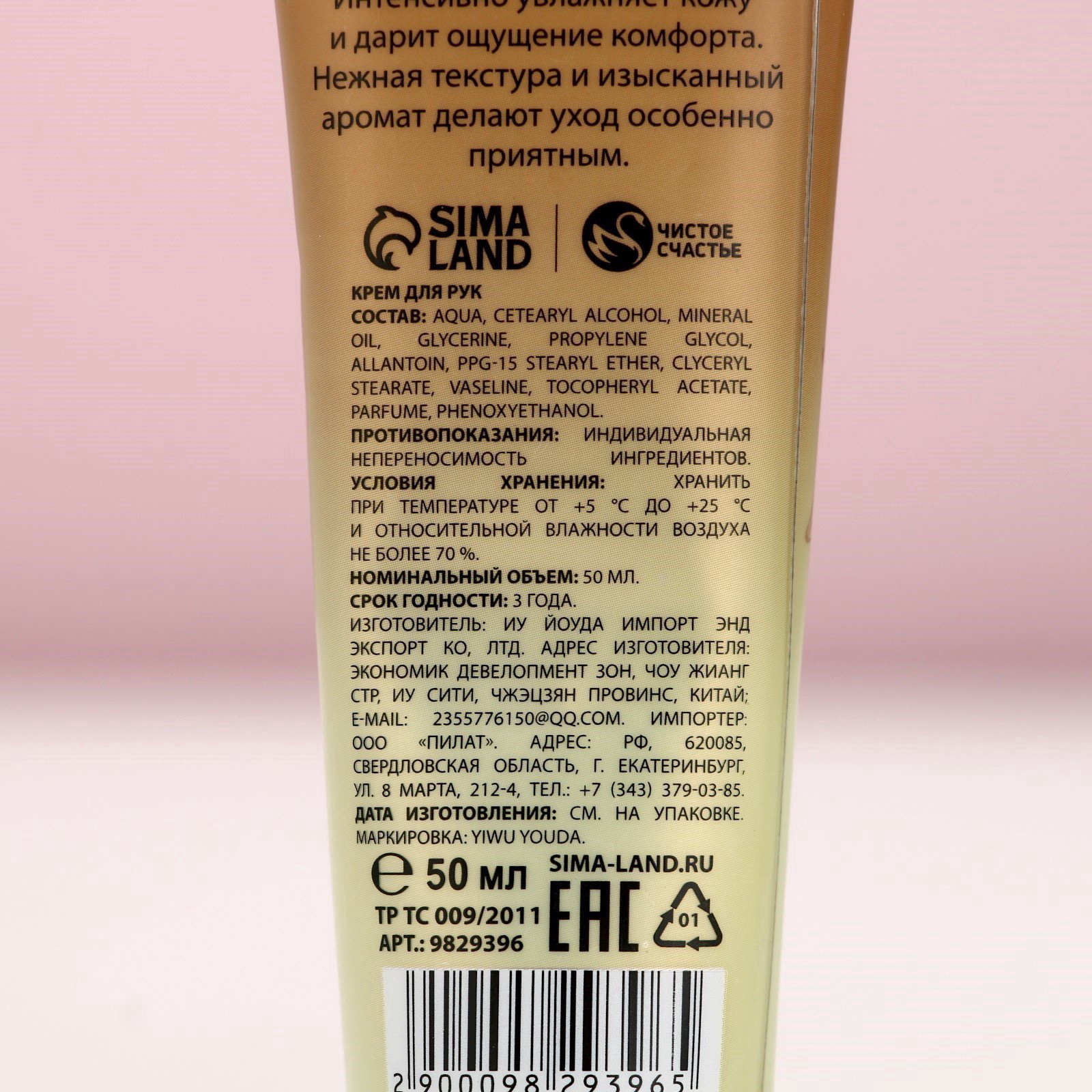 Крем для рук, 50 мл, аромат белого лотоса, 2.5x3.9x13 см., Чистое счастье, Китай