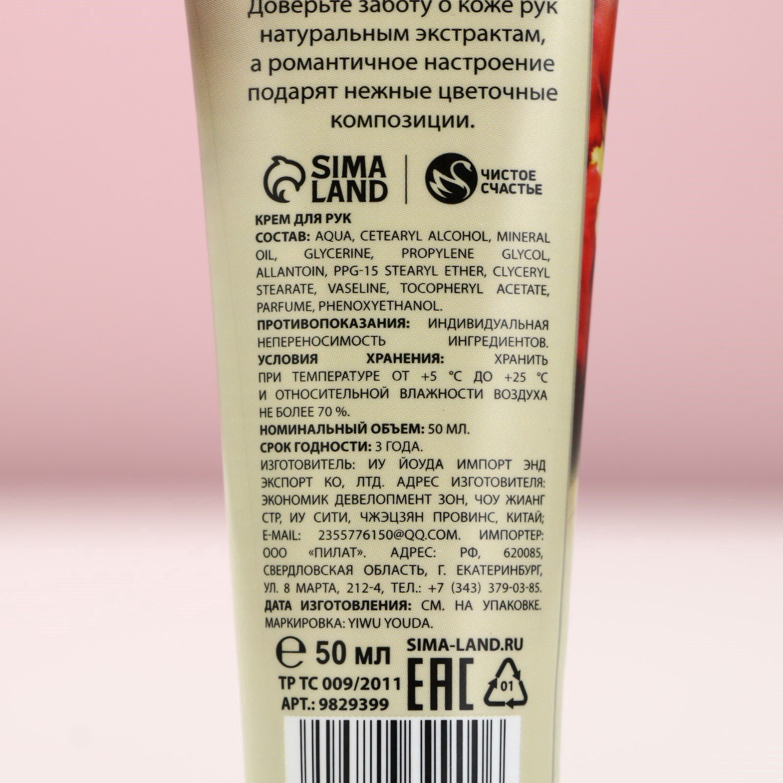 Область применения: Для рук, Для рук Аромат: Лилия, Орхидея Размер упаковки: 5 x 12 x 3 см. Темпер. ограничение НЕ ВЫШЕ ℃: +25 Темпер. ограничение НЕ НИЖЕ ℃: +5 Для кого: Для женщины Возраст: Для взрослых Тематика подарка: Уходовая косметика Набор: Нет Назначение: Увлажнение Цвет: Разноцветный Вес, г/Объём, мл: 50 Адресат: Без адресата Символ года: Нет Вид упаковки: Туба Тематика праздника: Универсальная тематика Тематика праздника: Универсальная тематика tnved: 3304990000 Вид: Крем Состав: AQUA, CETEARYL ALCOHOL, MINERAL OIL, GLYCERINE, PROPYLENE GLYCOL, ALLANTOIN, PPG-15 STEARYL ETHER, CLYCERYL STEARATE, VASELINE, TOCOPHERYL ACETATE, PARFUME, PHENOXYETHANOL. | ||
