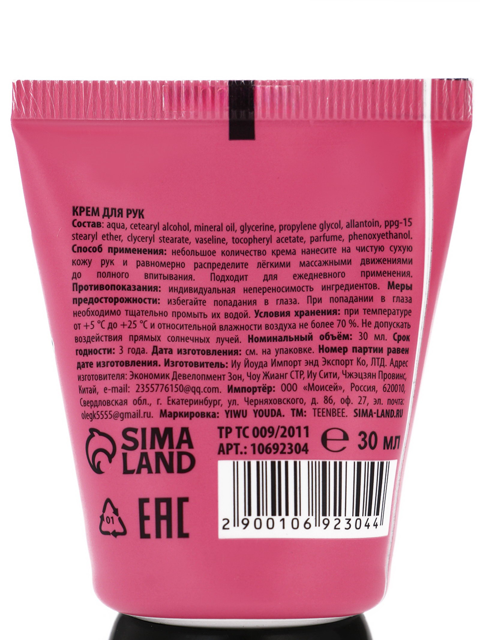 Крем для рук с ароматом малины, 30 мл, 2x3x6 см., TeenBee, Китай