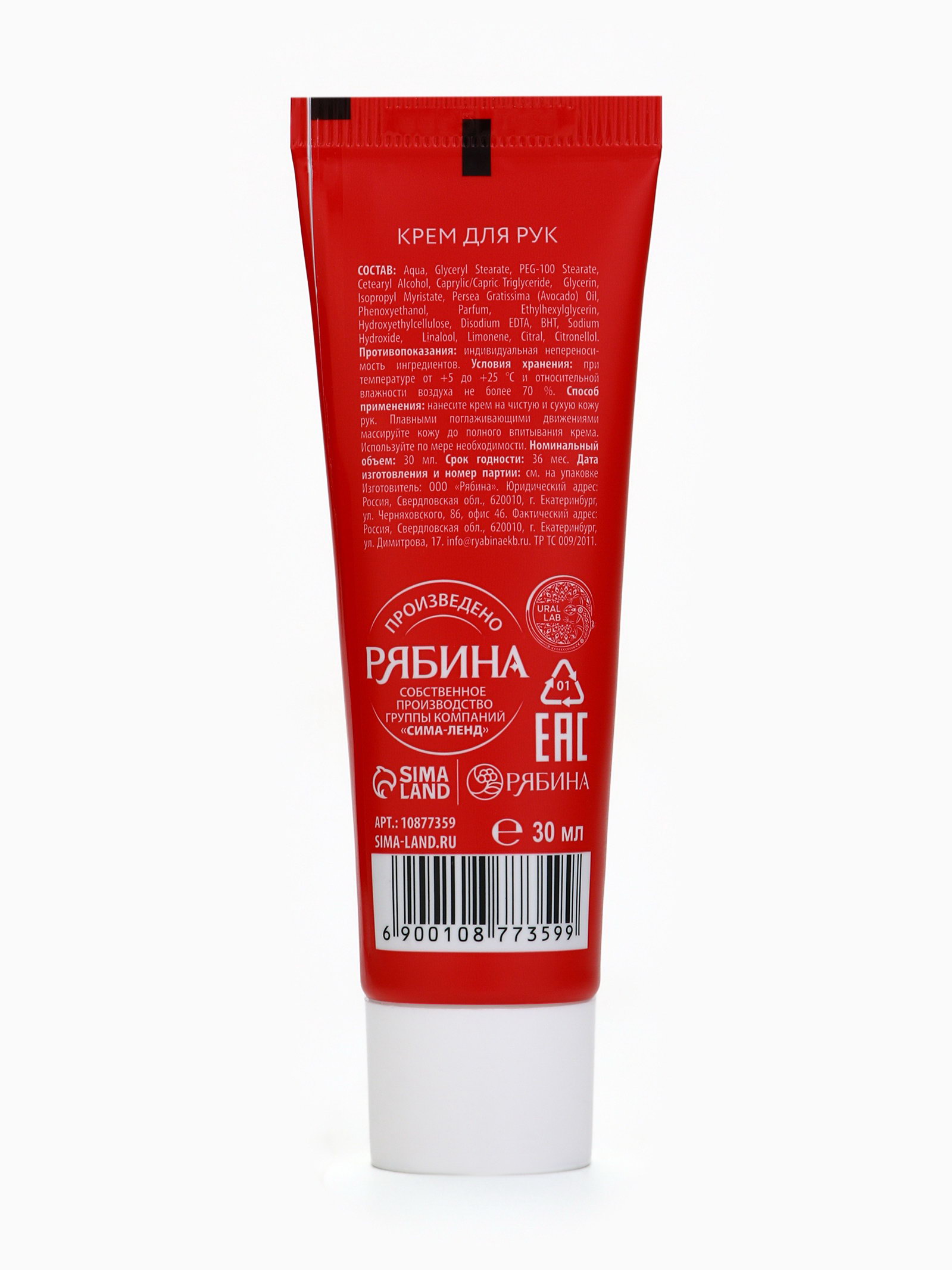 Крем для рук новогодний с ароматом мандарина, 30 мл, URAL LAB, Россия