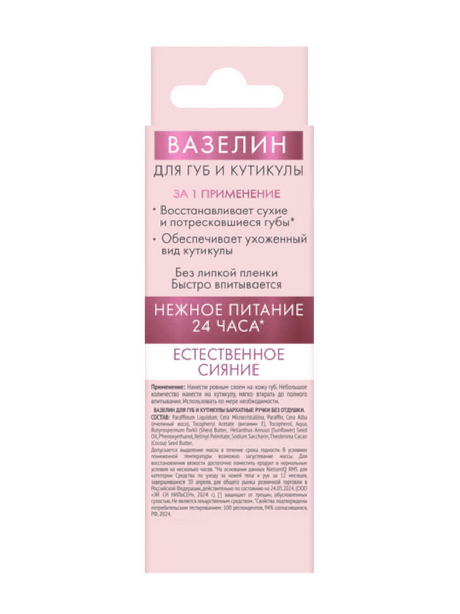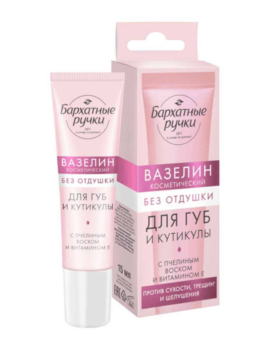 Вазелин для губ и кутикулы без отдушки, 15 мл, 15 мл., Бархатные ручки, Россия