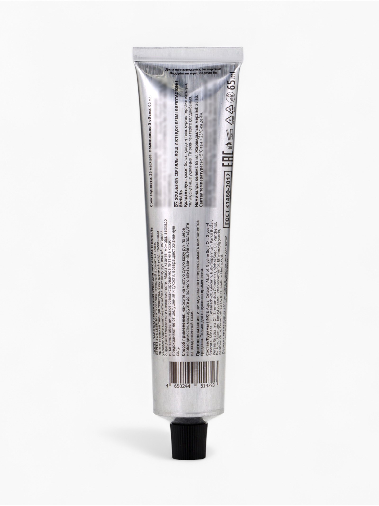Состав (INCI): Aqua, Cetearyl Аlcohol, Glycine Soja Oil, Glyceryl Stearate, Mineral Oil, Ceteareth-20, Glycerin, Butyrospermum Parkii Butter, Persea Gratissima Oil, Simmondsia Chinensis (Jojoba) Seed Oil, Panthenol, Parfum, Allantoin, Benzyl Alcohol, Phenoxyethanol, Ethylhexylglycerin, Xanthan Gum, Disodium EDTA, BHT, Sodium Hydroxide. Способ применения: Наносите на чистую сухую кожу рук по мере необходимости, массируйте до полного впитывания. Меры предосторожности: Не использовать на раздражённой коже. Противопоказания: Индивидуальная непереносимость компонентов средства. Только для наружного применения. | ||