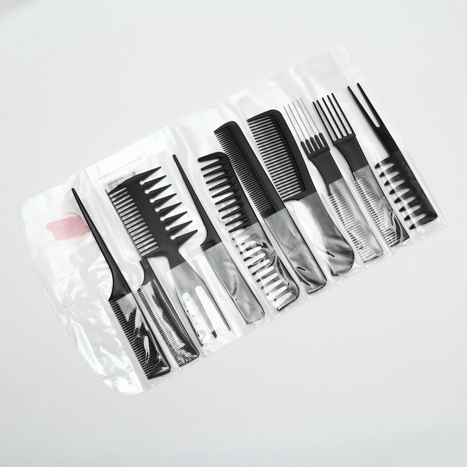 Набор расчёсок, 10 предметов, в чехле, чёрный, 0.5x27x23 см., QF, Китай
