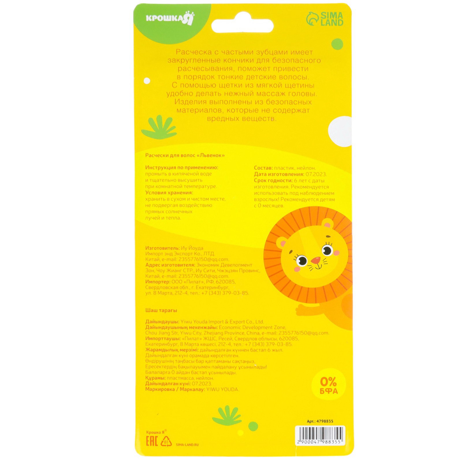 Расчёска детская, щётка для волос в наборе с погремушкой "Львёнок", 3x11x22.9 см., Крошка Я, Китай