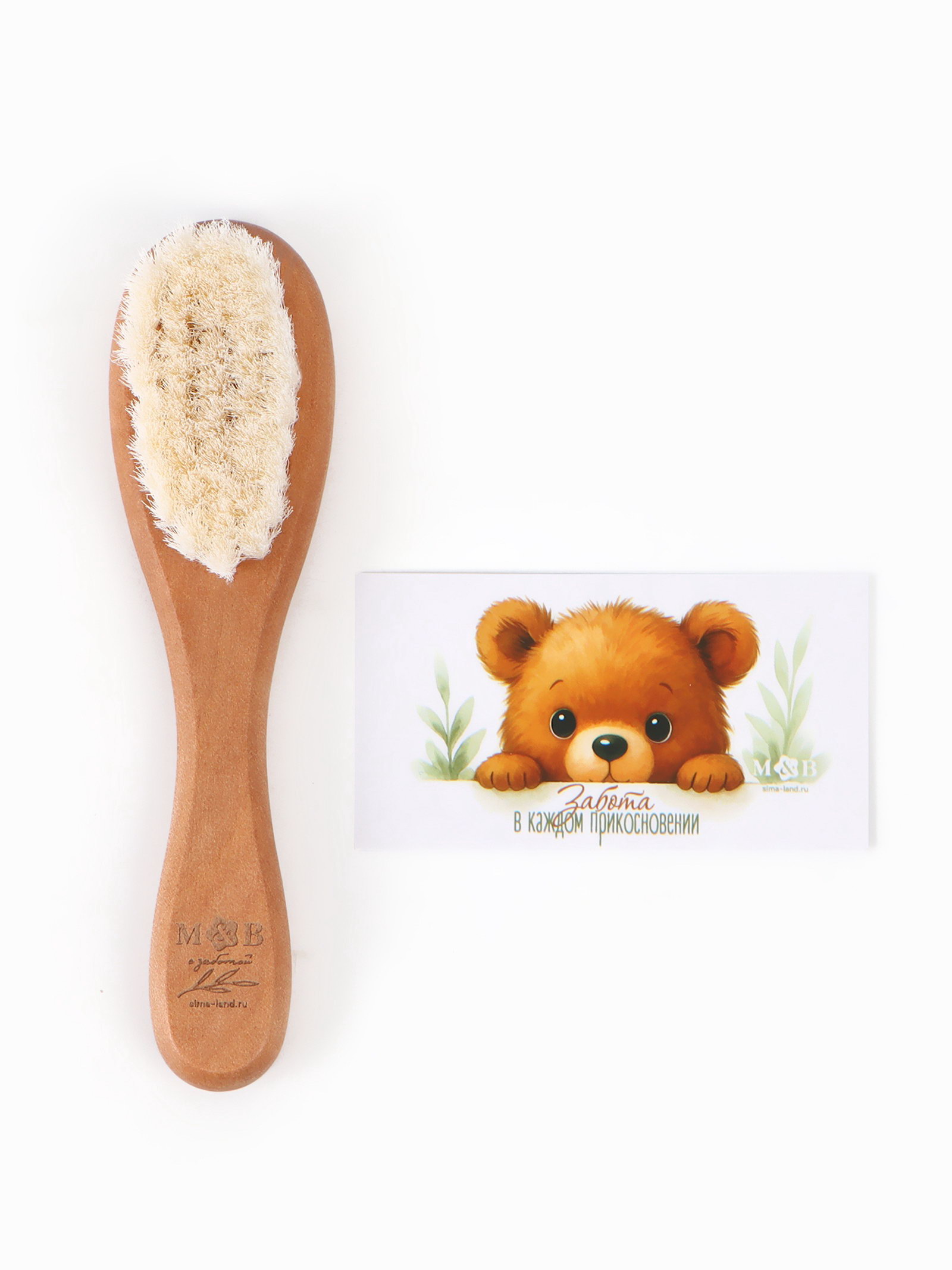 Размер упаковки: 4 x 6.5 x 18 см. tnved: 9615190000 Для новорождённых: Да Цвет: Бежевый Набор: Нет Тип расчёски: С ручкой Рисунок: Да Детская деревянная расчёска с натуральной щетиной Идеальный инструмент для бережного ухода за волосами малыша с первых дней жизни. Ключевые преимущества: