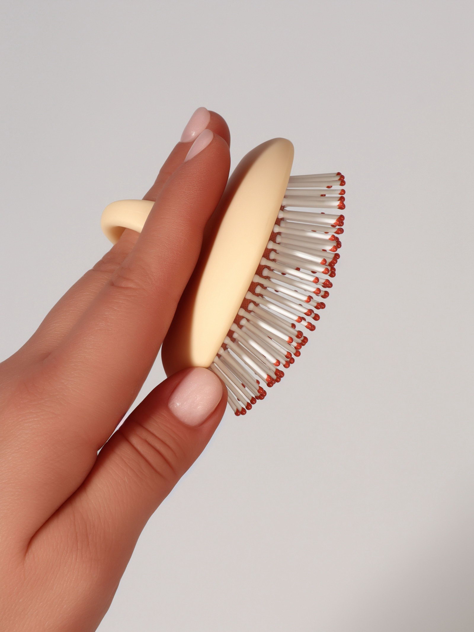 Расчёска массажная, компактная, 8x6.5 см, бежевая, 8.5x8.5x6.6 см., QF, Китай