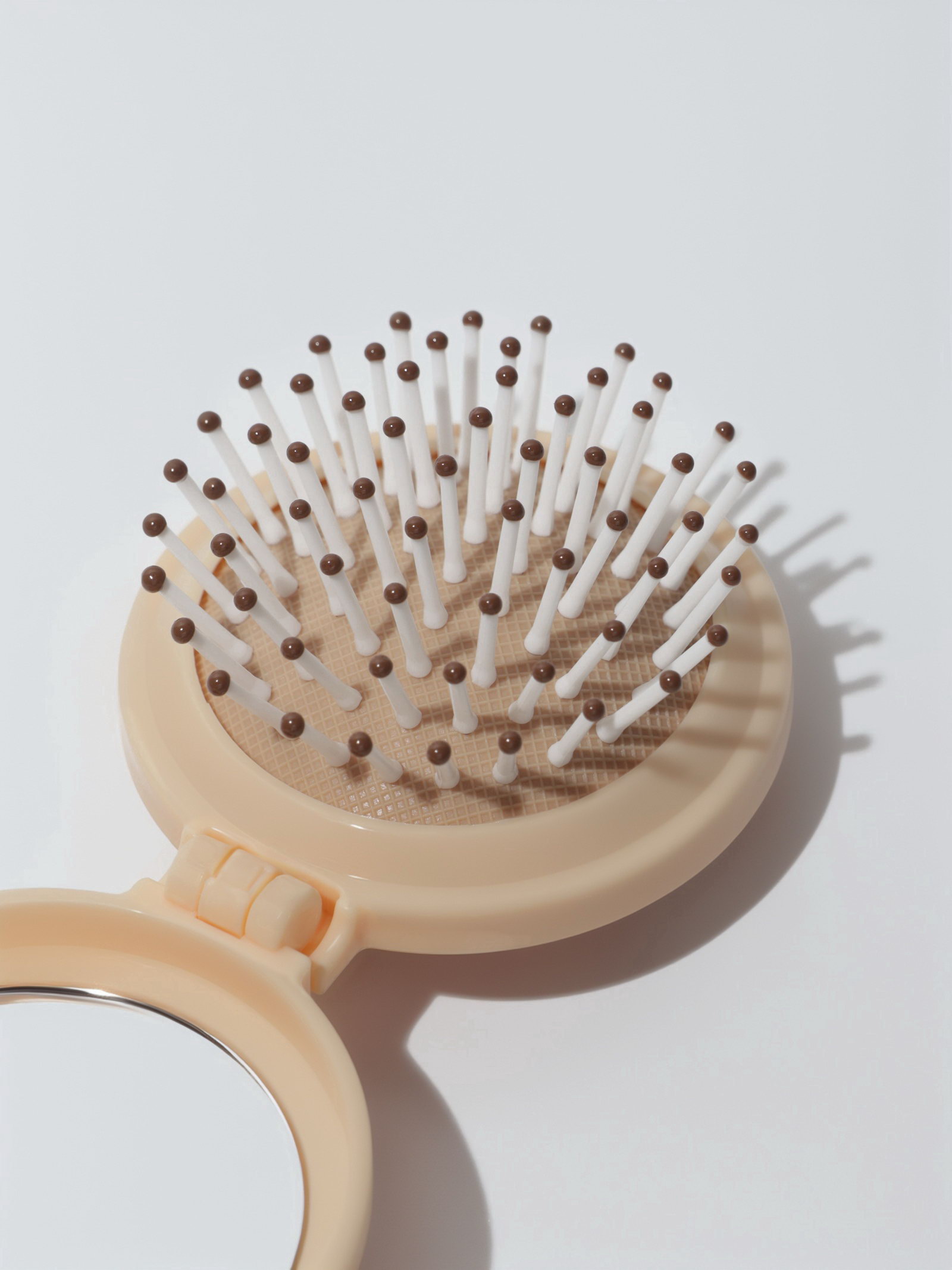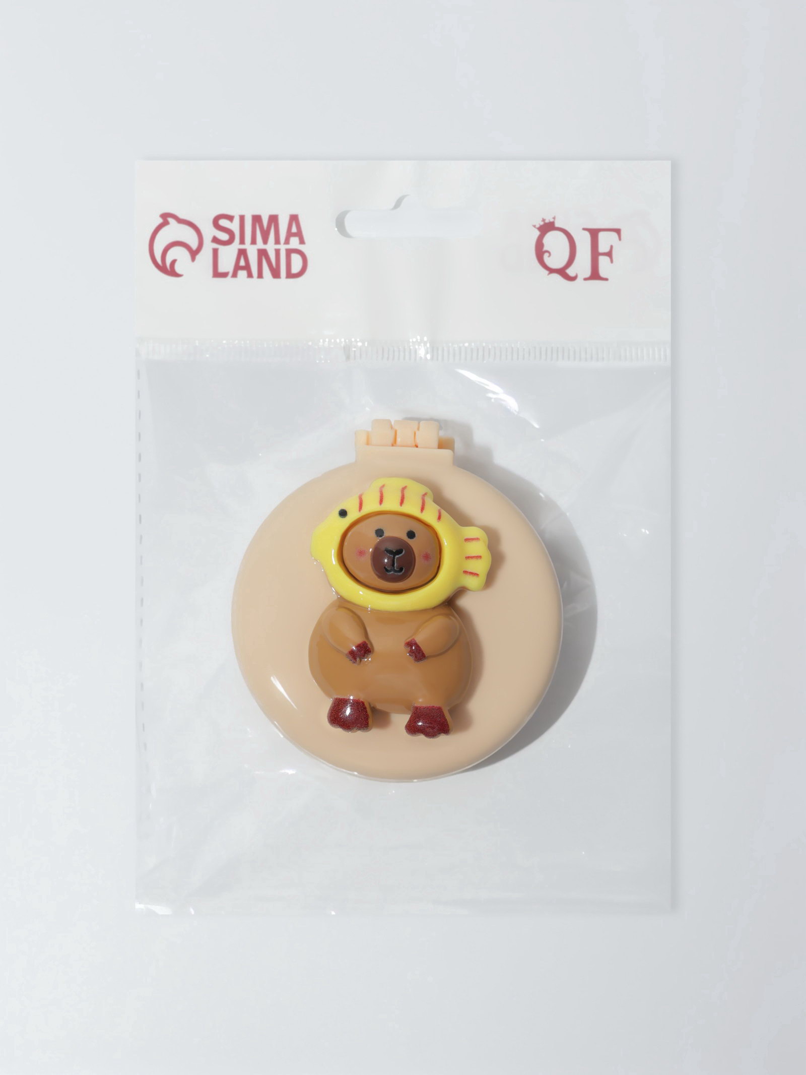 Расчёска массажная "Капибара", складная, с зеркалом, d=6.5 см, бежевая, 7x7.8x3 см., QF, Китай