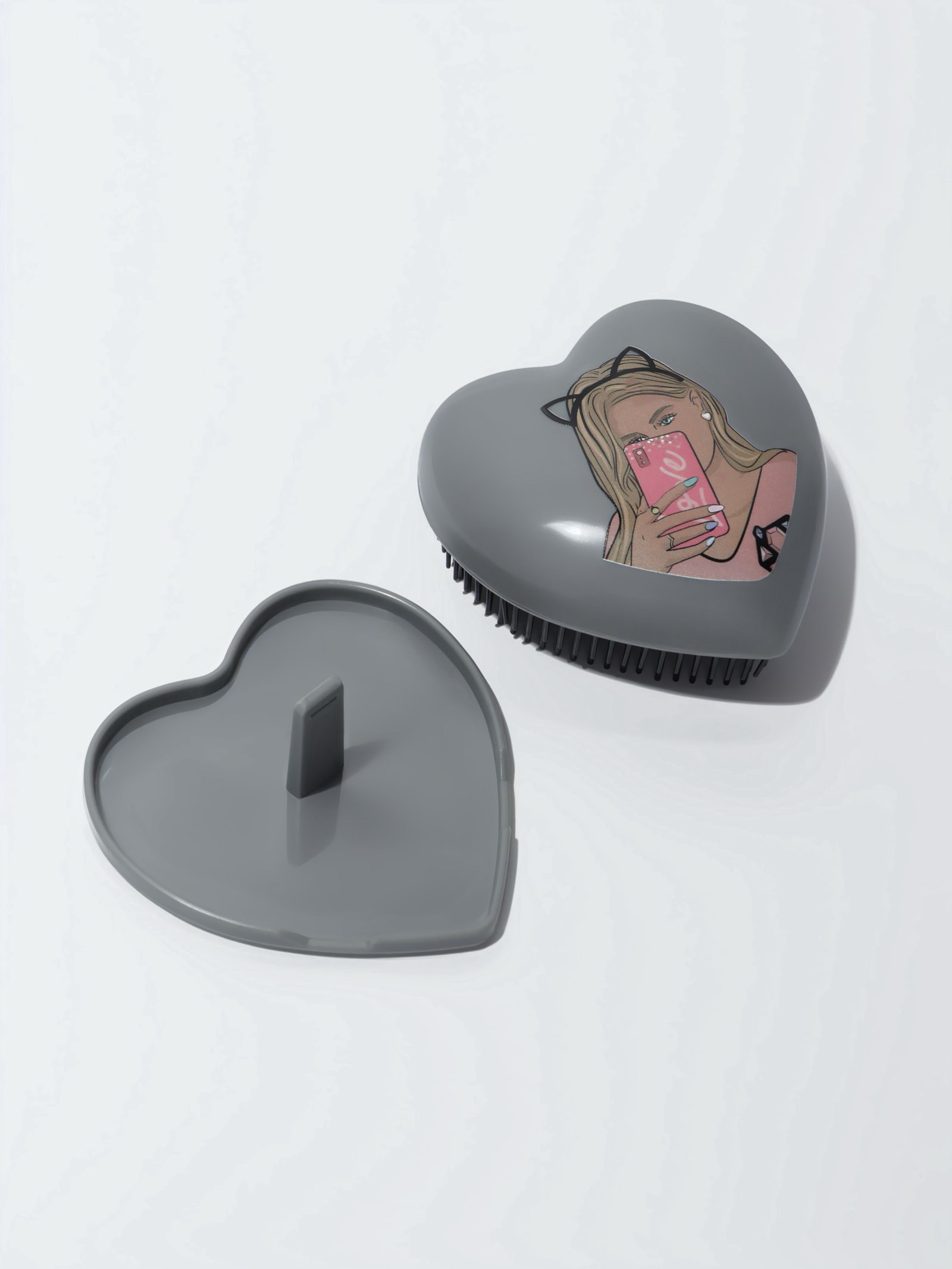 Расчёска массажная "Сердце", складная, 8.5x8.5 см, серая, 9x9x4.5 см., QF, Китай